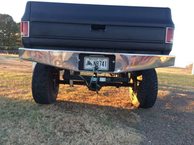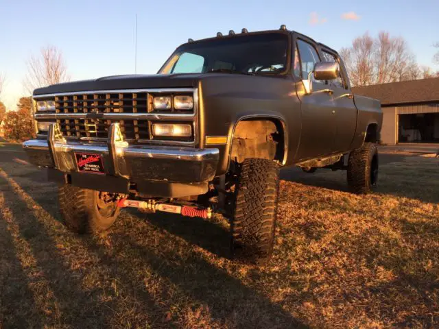 Custom 1986 Chevrolet Crew Cab short bed, 4x4 matte black "Dream Truck". Runs good, drives decent. 6" lift m+ 3" body life. Skyjacker shocks and steering stabilizer; Fitech fuel injection programmer + pump; Edelbrock top end kit and filter; locking hub... Lots of work done on this custom classic rig - solid and dependable - starts and goes every day (including when its cold (20 degrees +/-) . Truck started out life as 2WD, single cab that was extended and 4WD added before I purchased. I got this at a time when I really need more gas efficient transportation... prob gets 10-12 mpg and I am just starting out as an electrician apprentice... so, got the "dream truck" too soon and I am keeping the Camry.