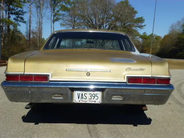 Car has dual exhaust, the motor burns clean and compression tested seamlessly, the motor is a rebuilt 350 (approximately 300hp), no leaks from motor or exhaust and the motor runs smoothly. The car has an Edelbrock intake, Edelbrock electric choke and 4-barrel carburetor