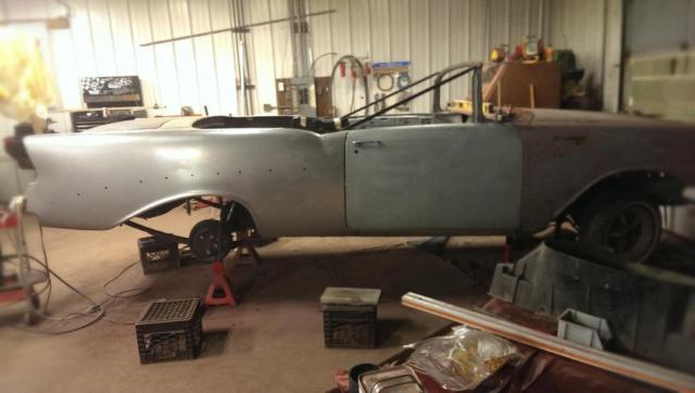 1956 chevy convertible project basically brand new body.new one piece floor,new trunk floor,brand new doors but have the original doors for parts.new inner and outter quarter panels,new inner and outter rockers etc.car has original x frame painted also have matching convertible title.rear is still in and suspension.have new front California bumper,new dash cluster.side moldings may be interested in trade for a 1955 1956 1957 hard top done cash added either way or a pro street chevy.chevelle 67 or 68 Camaro old mopar charger gtx etc