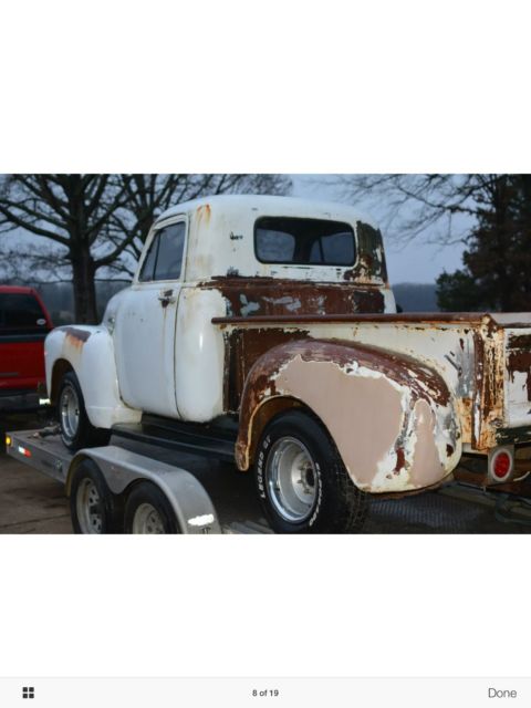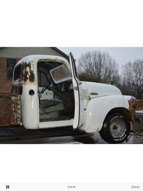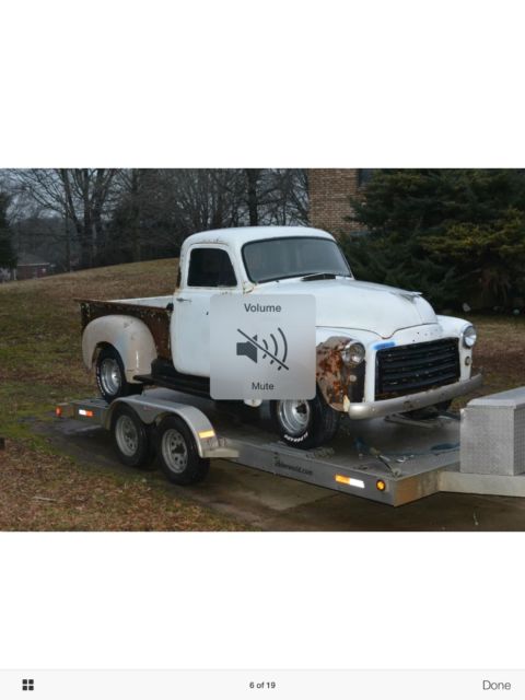 1954 GMC 1/2 TON SWB STEPSIDE PICKUP TRUCK PROJECT, ONE FAMILY OWNED FOR OVER 50 YEARS, 6 CYLINDER ENGINE WAS REBUILT 10 YEARS AGO, 3 SPEED MANUAL TRANSMISSION, THIS TRUCK HAS BEEN PARKED SINCE THE RIGHT FRONT FENDER WAS BACKED INTO AND DAMAGED 3 YEARS AGO, WILL RUN WITH A NEW BATTERY AND SOME TIME SPENT WITH IT, BRAKES NEED TO BE BLED FROM SITTING, 95% RUSTFREE SOUTHERN TRUCK, NEVER SUBJECTED TO SALTY ROADSOR CLIMATES, SOLID DOOR BOTTOMS (SEE PICS) ROCKERPANELS, FLOOR, FRAME, BODY MOUNTS AND CAB CORNERS, SOLID RUNNING BOARDS THAT YOU CAN STAND ON, THE PAINT HAS BEEN SANDED IN SOME AREAS AND SOME BODYWORK STARTED ON THE REAR FENDERS AND NOT COMPLETED, WINDSHIELD IS CRACKED, NEEDS SEATCOVER, OVERALL A GREAT FATHER/SON/DAUGHTER PROJECT TO RESTORE BACK AS ORIGINAL? RATROD? HOTROD? MANY POSSIBILITIES WITH THIS ONE, SOLD WITH A CLEAN CLEAR TITLE, AS FAR AS PICKING UP THE TRUCK ANYTIME IS FINE WITH ME, THE TRUCK IS SAFE UNTIL IT CAN BE PICKED UP, NEAT TRUCK AND YOU HARDLY EVER SEE THE GMC TRUCKS AROUND.I BOUGHT THIS TRUCK OFF EBAY AND NEVER GOT IT SHIPPED UP NORTH. THE PICS AND WRITE UP ARE FROM ORGINSL SELLER.THATS ALL THE INFO I HAVE ON THE TRUCK. BUT FROM THE PICTURES YOU CAN SEE ITS A GREAT START.BANK MONEY WIRE IS BEST PAYMENT METHOD SINCE TRUCK IS NOT LOCAL TO ME. THIS IS A LEGIT DEAL AND YOU WILL HAVE NO PROBLEMS. JUST BRING S TRAILOR AND TAKE IT AWAY. EMAIL ME OFFERS IF YOU MUST HAVE IT.