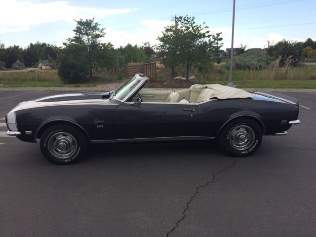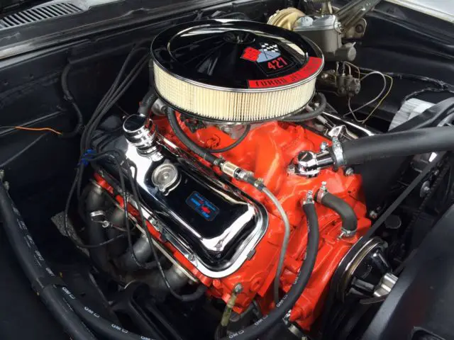 The car was originally delivered with British Green paint with a white convertible top. It came with pearl white interior, console and gauges, 396 with a 4-speed.
