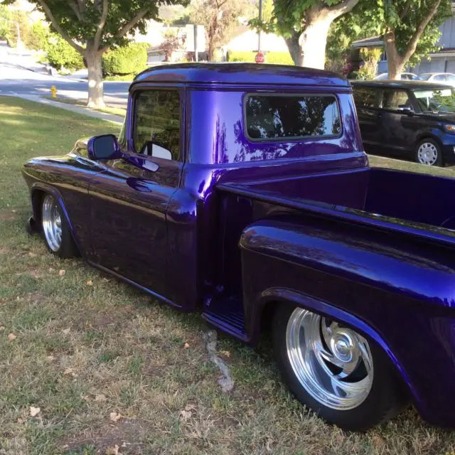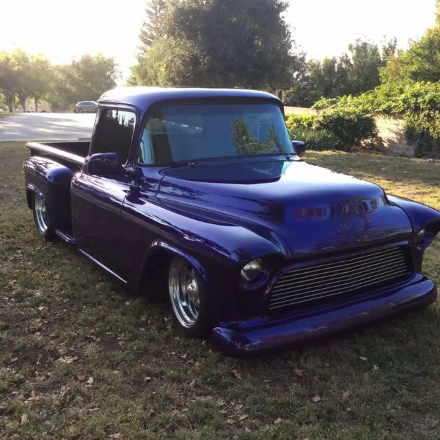 I purchased this truck in 1994 it took 6 yrs. to build. It is a total custom. 100K invested. It stays in the garage covered and only driven to car shows. It has been in 3 magazines and has received over 100 trophy's many best of show.As you look at the photos from the side, notice the front cab and fenders have been sectioned to bring the body line down to match the rear fender body line. I have never seen another truck where this has been done, making it one of a kind.The front end view, the head lights are frenched the blinker lights removed and frenched in behind the custom billet grille. The front bumper has been shortened 2" The front clip is a Volarie with disk brakes. The front end has hydraulics.The window wings and door handles have been removed. The tint on the door glass is sandwiched between 2 pieces of tempered glass. The rear end is a ford with drum brakes. The bed is Honduras Mahogany with sheet metal in the centerthat hinges at the cab, giving access to the batteries and the air bags. The gate is a swing gate. Interior is leather with custom seats and center console. Over head console is from late model blazer. There are a lot of details not mentionedthat make this truck a very special custom. I might also mention it has never been washed. The paint looks like it was painted last week, yet it was painted in 2000. The truck gets lots of attention.This will be the 2nd post on eBay priceremains the same. FOR QUESTIONS, CALL STEVE @ 805-857-1112 OR E-MAIL ssogie11@yahoo.com