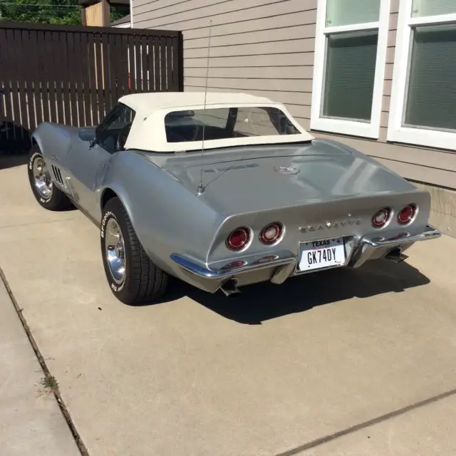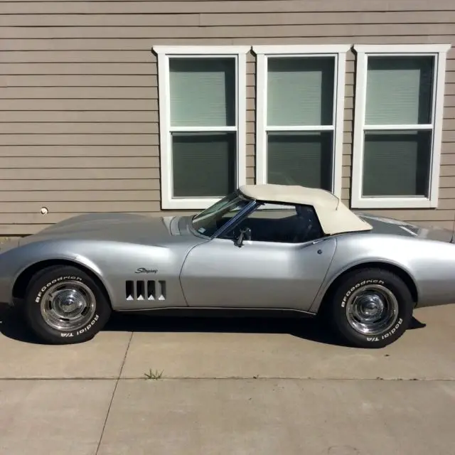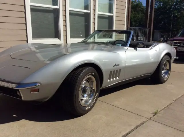 It is a blast to drive with the top down! 1969 Corvette convertible 350/four speed. Power steering, power brakes and tilt/telescoping steering wheel. I have around $25,000 in receipts from previous owner... Including frame off rebuild and motor rebuild, aluminum radiator with air conditioning added with less then 2000 miles driven. Previous owner had car garage stored for over 20 years and barely driven. I replaced fuel system including gas tank, clutch, brake system, tires, alternator, water pump, shocks, battery and charged the AC. It looks almost brand new from underneath.
