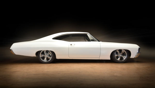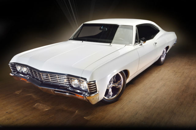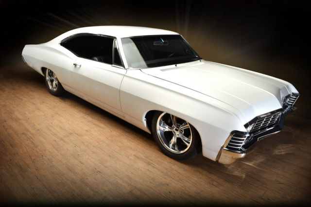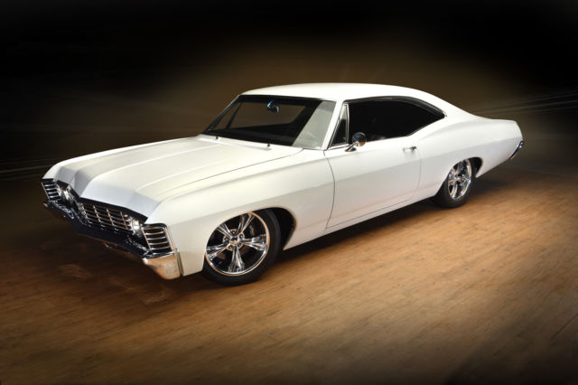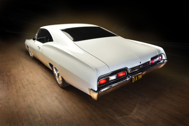 Fully restored(body on) 67' impala.California car.Built 355 roller motor.forged pistons,4 bolt main,polished aluminum heads,March pullies,water pump,aluminum radiator with Spal fan,new Edelbrock carb intake,Melling oil pump,Milodon head bolts,jet hot coated headers,2 1/2" exhaust with flow master mufflers,4l60 e trans,new drive shaft/u jounts,12 bolt posi with moser axles.14" Wilwood front rotors with 6 piston calipers13" rears with 4 piston calipers.Hotchkis arms with sway bars f&r.18" Boze wheels with Bridgestone tires.Complete Painless wiring,Viper alarm with power locks,Iditit chrome tilt column,custom refaced Auto Meter gauges in dash,custom stereo with hand made fiberglass kicks not cheap American auto sound,rear package tray hand made,10" sub box.Mercedes carpet made to the car(not a kit)suede smooth headliner(no bows)shaved door locks,ash trays.Everything in interior is new.dome lights,arm rests,handles.3 boxes of Dynamate,floor, roo, doors and 1/4's.all trim inside car is n.o.s restored/polished,new front/back glass,doors.1/4's and w/w are stock.ww have been taken apart and chromed also,very expensive and time consuming.all the rubber is new,doors,roof,trunk etc,f/r bumpers are rechromed and brackets are powder coated along with inner fender wells,grill brackets, splash filler piece,gas tank and rear axle.This car is super clean.base coat clear coat,urethane not water base.It was shot w/o the doors on it so the jambs are very clean.please don't ask dumb questions.The car just sits,it's been done for about 1 1/2 years now.NO TRADES...