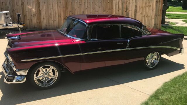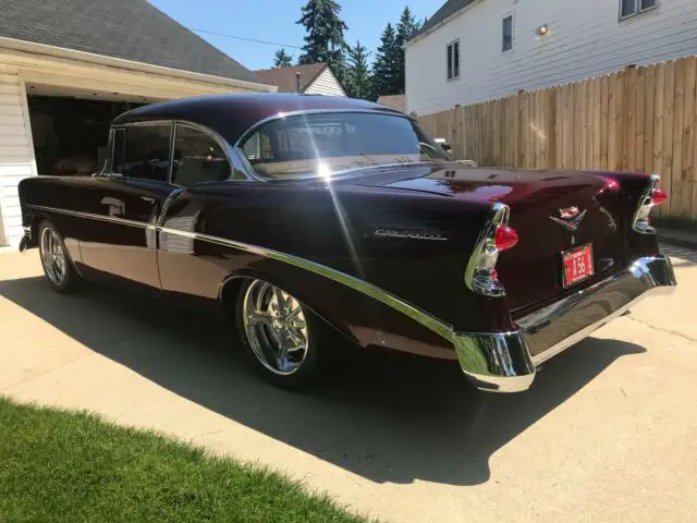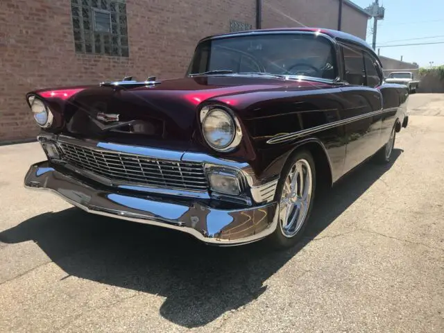 Very Rare 1956 chevy 210 hardtop sports coupe with 750 mile !!, 2016 world of wheels class and pick of show winner,, I believe there was only around 14,000 produced that year, this vehicle went a total frame off restoration at Roman Performance in Addison Illinois, every nut and bolt replaced,car has custom Candy Brandy Wine paint that is Lazer Straight,, and custom Leather interior,trim tag is off the car but i have it,custom KinDigIt door handles,smoothed fire wall, stainless steel gas tank, new wiring,,power windows,power locks,vintage air conditioning,dakota digital gauges,rain gear wipers, car alarm, custom one piece front and rear bumper, custom center counsel with navigation radio, car is powered by a 396 big block with fuel injection and a 700r transmission that was professionally built 750miles ago and a ford 9inch rear end with 3:50 gears, has wildwood 4 wheel disk brakes, hyraboost brake, billet specialties hood hinges and wheels, has a Mattson's custom radiator and core support the car is on the stock frame with tubular control arms,,the list is to long...car is in show quality condition...