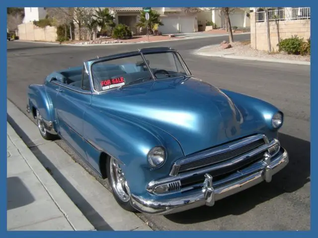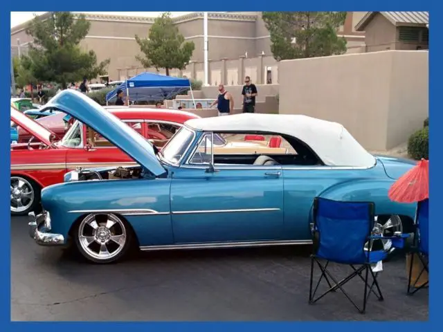 One of the slickest looking Chevy models ever made was the 1951 Styleline Deluxe Convertible. The open air freedom and classic convertible feel of six decades ago remains, but this sweet ride has been updated with modern small block V8 power and rides low on big Billet Specialties rims to give it a slippery contemporary profile. This is the kind of car you can get in, turn up the sound system and cruise anywhere you want to go. It is solid, dependable and economical and it gets loads of attention at any gathering of car lovers.