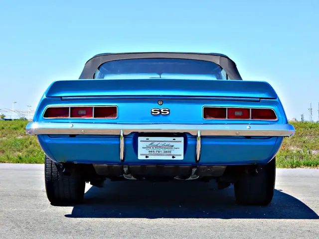 1969 SS CamaroPower Convertible Top with Black Boot Cover383 Stoker engine5 speed Tremec TKO transmission4.10:1 Posi-Traction Rear EndSSBC Power Front BrakesWilwood Rear Disc BrakesPower SteeringHolley 4bbl CarburetorEdlebrock Performer Aluminum IntakeMSD Plug WiresMSD CoilMSD 6AL Ignition SystemCeramic Coated HeadsAluminum Water PumpMilodon PanRear Traction BarsBraided Stainless Steel Fuel LinesAnodized Fuel Regulator and Fuel FittingsFront and Rear SpoilersAmerican Racing Aluminum WheelsHurst ShifterSony AM/FM/CD Stereo with Trunk Mounted Amplifier and SubwooferFuel Pressure GaugeVintage ACCar CoverAmazing Camaro inside and out, call with any questions!