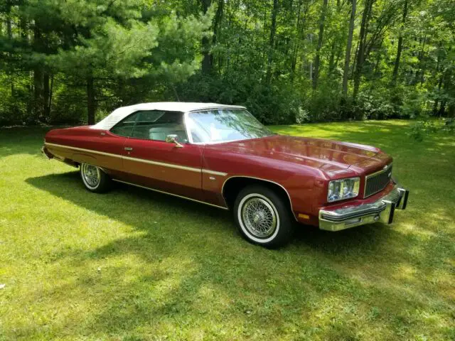 Up for sale is a 1975 Chevrolet Caprice Convertible, has a very rare optional 454 all numbers matching, car has been cosmetically restored as needed about 30 years ago and has been garage kept and maintained since, car is mechanically sounds runs and drives fantastic, power top isin very nice shape and operates perfect, car has never had any rust or damage issues but did have an older repaint of the factory color. Interior is in very nice shape overall and mostly original, good investment car but still is in a nicedriver condition, please reply for any further details id be more than happy to answer and questions so that you know exactly what your buying, happy bidding!