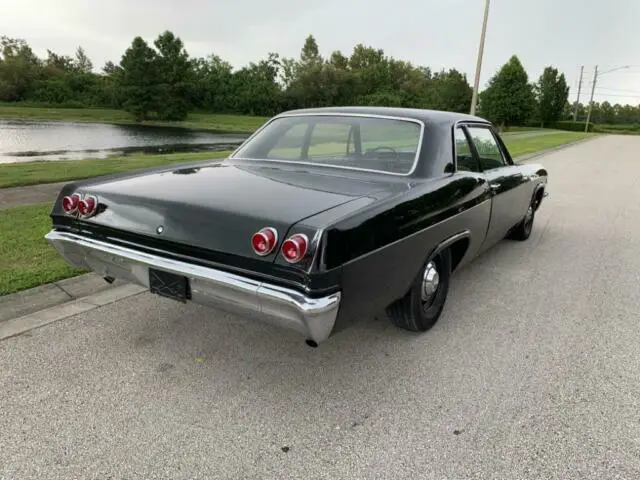 1965 Chevrolet Bel Air 2 door post, 396 Big Block V8, 4 Speed Manual Transmission, Beautifully finished in Black exterior with like new Black Interior, This car was a frame on restoration approximately 5 years ago with under 5,000 miles since restoration was completed. Car runs and drives excellent and has new tires with dog dish caps. This is a great car!