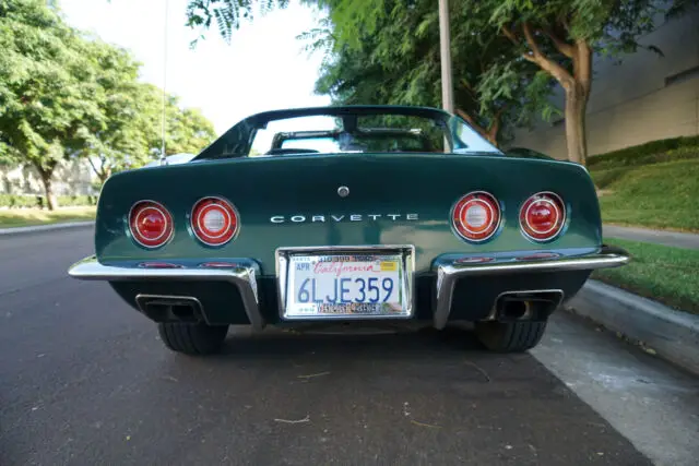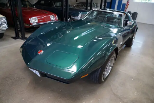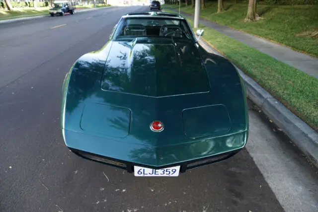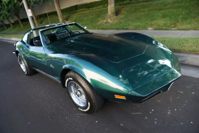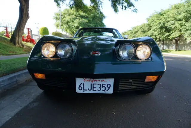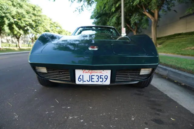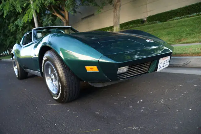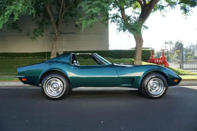 West Coast Classics are proud to present a great and rare example of this original southern California and matching #'s Big Block 454/275HP LS4 4BBL V8 'CWT' code engine 1973 Chevrolet Corvette T-Top Coupe in its original 'Blue/Green' (Code 945) color with only one repaint since new and its all original 'Black Vinyl' Trim (Code 400) interior matched with its original and highly desirable M21 4 spd 'close ratio' manual transmission and loaded with factory options including:LS4 454/ 275HP V8... engine ($250),Air conditioning ($452),Power steering ($113),Power brakes ($46),Power windows ($83),Optional Rear Axle ($12),Tilt-Telescopic Steering Column ($82),Rear Window Defroster ($41),Custom Shoulder Belts,Heavy Duty Battery ($15),AM-FM Stereo Radio ($276),Rally Wheels,and removable solid roof panels!The third generation 'Shark' in the years of the first energy crisis had a two-stage transitional facelift with the '73 being unique among 'Vettes for combining a smooth body color nose with the original '68 vintage 'Kamm' tail and chrome bumper.This particular car was actually built in December 1972. The cars original 'Blue-Green' factory color repaint is very good and the original 'Black Vinyl' interior and the trim is in absolutely exceptional condition for it's age with virtually no signs of any significant wear. The car has has obviously always been garaged with no signs or history of any accidents! All the options are working as they should including all gauges and lights and the AC. The car will be sold with a thick file documenting it's history including all it's original California registrations and recent service records. This is obviously one very low mileage example of this classic American sports car - a beautiful 1973 Chevrolet Corvette with it's all original interior and loaded with desirable factory options including the original Big Block matching #'s 454 275HP LS4 V8 engine matched to a 4 spd manual transmission and with air conditioning, power brakes, power steering and power windows and apart from one repaint in its original color, in virtually completely original and unmolested condition throughout! The engine purrs smoothly under the hood and the transmission shifts smoothly through all the gears - an absolute pleasure to drive without any of the older and generally much higher mileage Corvette typical shakes or rattles - a truly remarkable daily driver that will give any modern day sports car a run for its money This is a great opportunity to own a well kept and maintained example of a loaded early seventies Big Block 4 spd Corvette with its original matching #'s engine in great daily driving condition for any Corvette or classic American muscle car enthusiast to enjoy today!