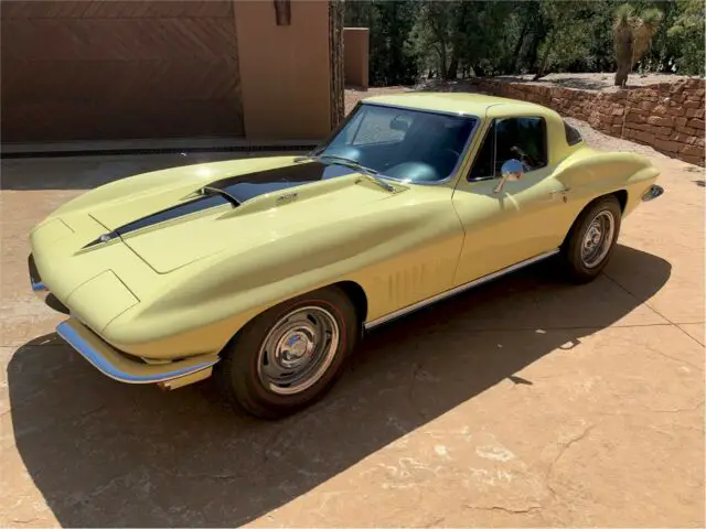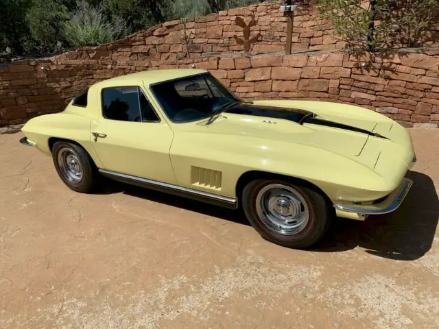 If you ever desired a 1967 big block coupe then this is your time. For your consideration is an original and well documented Sunfire Yellow 427cid/435bhpV8 Turbojet Tri-Carb L-71 engine corvette. Power is run through a 4 speed manual transmission for just over 50,780 original miles. ( as presented to me from previous owner and condition of frame/drive train along with third party appraisals ). Documentation goes back to original owner out of California with protecto plate and rare emission equipment intact. I have owned the car for 6 years and purchased it from a business owner/auto enthusiast/jet pilot/drag racer out of Georgia. He told me he had personally inspected 20 cars before buying this one. The only reason he sold it is he built a large home at the time and needed to furnish it.Everything works in the car including the clock. This rust free car has been well taken care of it’s entire life and is currently stored in New Mexico. A video can be viewed on YouTube here: https://www.youtube.com/watch?v=FmeflYkncLM