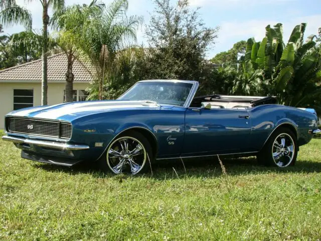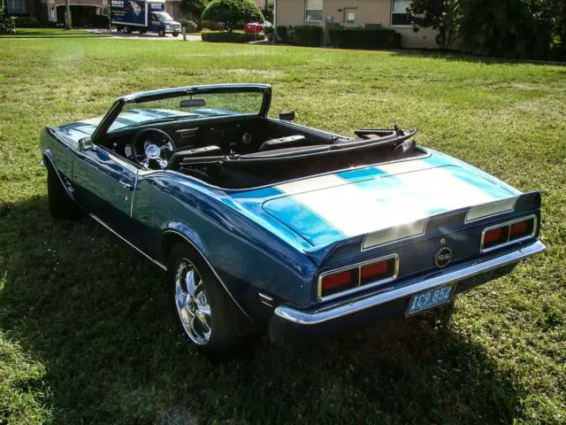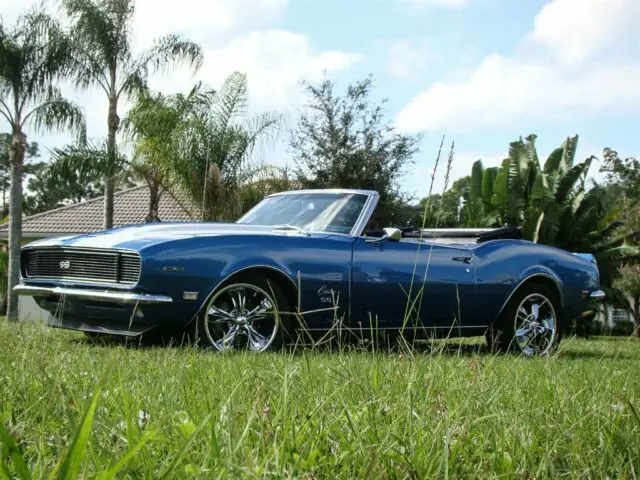 This vehicle can be seen by appointment only. Please call us to schedule an appointment. Please visit for additional photos, information and a video. What is cooler than a 1968 Chevrolet Camaro SS? How about a 68 Camaro SS convertible with modern technology? This Lemans Blue Super Sport is powered by an LS6 with Spartech fuel injection and CNC heads. This combination delivers 400+ horsepower! It is bolted to a GM4L60 automatic transmission with overdrive for easy cruising. The rear gears are 3.43:1 which give you enough power off the line, but keep the engine happy at highway speeds. Walk around the back when this baby is running, and you will instantly fall in love with the sound the Dynatech headers and 2.5†Flowmaster exhaust make. What a rumble! The interior is custom and modernized with 4 bucket seats that are incredibly comfortable and look great. A Dakota Digital VHX gauge system gives you a reliable read on engine specs and have a cool retro flair. A Kenwood KDC500 head unit with aux input with Prime Amplifier power a subwoofer that has been nicely installed in the trunk in a custom panel. You can crank your favorite tunes as loud as you want. No relying on a single dash speaker for this Camaro. The suspension is also beefed up with Hotchkis sport components while 4-wheel power disc brakes provide more than enough stopping power. Foose chrome wheels look phenomenal and let onlookers know this isn’t your typical 68 Camaro SS. This is a no expense spared restomod. Pamper yourself with A/C, power steering, power brakes, leather power seats, tilt steering wheel, modern gauges and sound system. One push of the gas pedal will remind you that you are seated in a muscle car with more power than it had back in 1968, and more dependability. This vehicle is eligible for an extended service contract through Classic Vehicle Protection. Click the “Warranty†tab for more info. For additional information on this and our other classic and collectible cars for sale, please visit . For assistance please call the office at 855-472-2982, text our cell phones at 855-472-2982, or email us at . We are located between Tampa and Sarasota. We are 90 minutes from Orlando and Fort Myers.