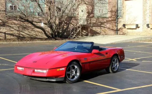 1986 Chevrolet Corvette Convertible Pace Car Only 59,370 Miles From New Original Manuals & Booklets, Delivery Info, Recent Dealer Service Records Bright Red on Grey Leather VIN: 1G1YY6785G5904510 1: USA Built G: General Motors 1: Chevrolet Motor Division Y: Restraint System Y: Corvette 67: Two Door Convertible 8: 5.7L Tuned Port Injection V8 5: Check Digit G: 1986 Model Year 5: Bowling Green, Kentucky Assembly Plant 904510: Production Sequence Options: Power Driver Seat (AG9), Power Door Locks (AU3), Standard Leather Seats (A42), Bucket Seats (A51), Bowling Green Assembly Plant (BGR), Manual Air Conditioning (C60), Twin Remote Outside Mirrors (DG7), Speedometer Driven Gear (D3W), Speedometer Sensor (D9A), Delete Speedometer Adapter (E5Z), Delete Speedometer Key (E9Z), 2.73 Rear Axle Ratio (GU2), Cruise Control (K34), 105 Amp Generator (K68), 5.7L 350ci TPI V8 (L98), Automatic 4spd Transmission (MD8), Automatic Transmission (MX0), Federal Emission Systems Requirements (NA5), 16x9.5 Cast Aluminum Wheels (PW9), 16” Wheels with P255/50VR16 (QZD), Delco-Bose Four Speaker System (UQ4), Delco-Bose Stereo System (UU8), Vehicle Statement Certification (V73), Modification Stock Order or Order Sold (1AZ), Graphite Exterior Trim (12I), Graphite Leather Interior (I22), Black Convertible Top (19T), Bright Red Paint (81U) Purchased new in Massachusetts, this car was there for nine years before being sold to a gentleman in Indiana. The car traded hands twice within the state, but has remained in Indiana since 1995. This is a very nice example that has been continuously exercised and well-serviced through the years. The clean Autocheck report (inquire for a scanned copy) indicates mileage of 20k in 1998, 43k in 2014, and now 59k in 2019. Please see the end of this listing for a summary of service records, but the most noteworthy was a thorough inspection and subsequent service at an Indianapolis Chevy dealer in July of 2018. As it sits now this is a nicely sorted, ready-to-enjoy ‘86 Convertible in need of a new home. Exterior: - Please see the video along with the listing, as the car is shown in detail. Blemishes are all highlighted. The most significant thing to be aware of is some slight paint color mismatches; above the body mid line on the doors and hood was resprayed at some point, and it’s a very slightly brighter red than the rest of the car. Glass and light lenses are all clear and crack-free. Even the lower fog lights look great. Weatherstripping is all very nice throughout. No cracking or deformities on the nose or rear panels like we sometimes see on these cars. Doors open and close nice and smoothly, no slamming or anything like that. Original 16” x 9.5” Sawblades are in excellent shape and will come boxed-up with the car, in addition to the current 17” ZR1-style polished wheels. No curb rash, pitting, or other damage….very nice. Goodyear tires were new in 2016 and remain in great shape. Tires have 14k miles on them since being mounted three years ago. Pop-up headlights function as they should, as do all other lights and signals. Black convertible top is excellent. No punctures or significant wear. Interior: Graphite leather contrasts well with the bright red exterior. Seats are in impressive condition. No scuffs, punctures, or other damage. Even the inside of the driver’s outer bolster is very nice. Again, please defer to the video for a good look. Door panels are great, no kicked-open markings or busted armrests. Dash top is perfect. No marks from any old adhesive or anything like that, no cracks or visible age/wear. Black surfaces throughout the lower dash are very well preserved, not faded or scratched-up. Grey carpeting is good not great throughout – minor age, particularly behind the center console, but no big stains or fraying. Grey floormats will come with the car as well and those are in nice shape, and the plastic hard floor mats will come with the car as well. Digital dash display is fully functional, and the odometer is functional as well. Odometer reading of 59k is known to be accurate based on the vehicle history report, service records, and observable wear. Fan and heat are functional. Air conditioning is still on R12 refrigerant, it has not yet been converted to R134a. It is functional though. Radio powers on just fine and the antenna is functional, but the speakers will need attention as sound does not come out. No static, no music. Powered driver’s seat is functional, and these seats are not only in great shape, but extremely comfortable. Mechanical / Underbody: - Please take a look through the underbody photos, as the car is documented in detail. This car is super clean underneath. A highlight of the car. It has been garage kept in a dry environment and it shows. The car runs and drives every bit as well as you would hope and expect from a well-taken-care-of, 59k-mile example. Steering and suspension feel is nice and tight. Truly no tendencies or noises of concern. No leaks either. The car starts right up, idles cool/steady/quiet, pulls hard through the gears with no hesitation, shifts smoothly and on-time, brakes straight and effectively, and the ride quality is very good. No shakes, rattles, pulling under acceleration/braking, steering play, etc. No surprises, this car is well-sorted and ready to enjoy. Service Records (in addition to routine oil changes): August 2016, 45k Miles, Discount Tire: Replace all four tires, Goodyear Eagle F1 AS 275/40R17. February 2018, Simmons Automotive Service, 54,973 Miles: Replace brake master cylinder and power brake booster, bleed. July 2018, Ray Skillman Chevrolet, 55,753 Miles: Spark plugs, wires, distributor cap and rotor, thermostat, valve cover gasket, intake gasket, coolant flush, all four brake rotors and pads, oil/filter. December 2018: Replace battery. AC Delco 75VPG. With any further questions, photo requests, or to discuss purchasing, please reach out to Jake at 773-303-6122.