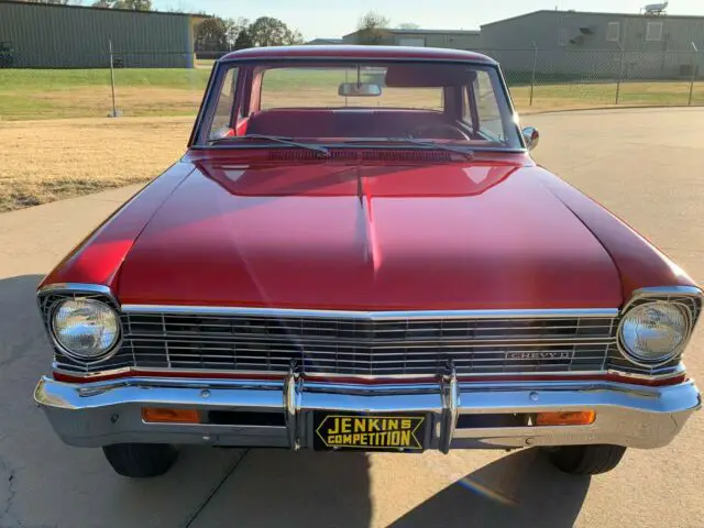 This is a very nice 1967 Chevy Nova II. It has been frame-off restored and has only 100 miles on the restoration. This super clean2 door postcar that boasts:327/350 hp, L79 engine, Munzie closed-ratio transmission, 370 12 bolt rear-end,chambered stainless steel exhaust system, radio delete, front disc brakes.Ground off restoration, every nut and bolt. Beautiful Red on Red, just a gorgeous car!This is one of the nicest Chevy ll Nova 's available. If you're in the market for a Chevy ll, this is the one for you. You'll be hard pressed to find another one this nice!