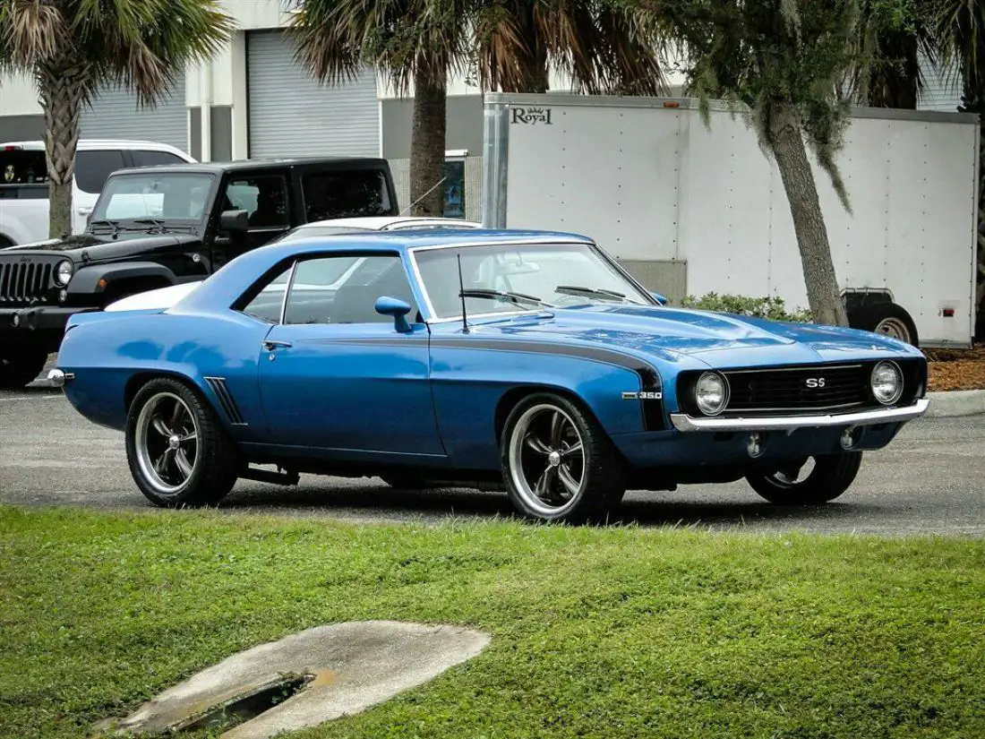 Please visit for additional photos, information and a video. Restomods are all the rage right now and this car is a good example of why. Take the looks of one of the baddest muscle cars ever built, pack it with a potent punch of modern technology and you get this. A 1969 Chevrolet Camaro SS with an LS2 V8 with fuel injection, aluminum heads, custom intake manifold with cold air intake, full-length Hedman Headers running to true dual exhaust and a smooth shifting modern automatic transmission. An aluminum radiator with electric fan keep it all cool. The engine compartment is ready to show with a custom radiator cover, chrome hood latch and fender braces and aluminum valve covers. The LS2 is built with Texas Speed 228R cam, Texas Speed valve train, an aftermarket intake with 92mm throttle body, forged pistons, all new seals and gaskets, 5 angle valve job with ported heads and long tube headers with Black Widow exhaust! The engine was built to handle a ProCharger supercharger, but it was never added. It is backed by a built 4L80E transmission with an FTI3000 converter, which then routes the power out back to a beefed up rear end with 3.55 gears and a new Auburn posi unit and TA girdle cover. Subframe connectors have been added to stiffen up the chassis along with traction bars to make sure all that power makes it to the pavement. The exterior is painted in a beautiful blue metallic with black SS hockey stick stripe. Boss wheels give the exterior a modern touch and show off the 4-wheel disc brakes. The front brake rotors are drilled and slotted and bring this car to a stop in a hurry. A cowl hood, rear spoiler and blacked out SS taillight panel make this car look as mean as it sounds. The interior is left mostly stock, with only minor modifications. We all need cupholders these days, so two have been added to the factory center console. A tachometer, oil pressure gauge and temperature gauge have been added to keep an eye on that modern powerplant. A Kenwood AM/FM/CD player has been installed along with new speakers in the package shelf to keep your tunes rocking as you cruise in style. A billet SS steering wheel brings a bit of modern flair to the interior and ties the old and new together nicely. The trunk is left stock with correct spatter paint. The front end has tubular control arms for an improved ride. If you’re looking for a first generation Camaro that has all the perks of a modern car, give this Camaro a good hard look! This vehicle is eligible for an extended service contract through Classic Vehicle Protection. Click the “Warranty†tab for more info. For additional information on this and our other classic and collectible cars for sale, please visit . For assistance please call the office at 855-472-2982, text our cell phones at 855-472-2982, or email us at . We are located between Tampa and Sarasota. We are 90 minutes from Orlando and Fort Myers.