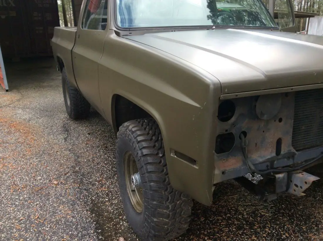 Up for sale is a Super Solid Chevy Short Wheel Base 4x4Very rare 4.3 TBI six cylinder 4 speed manual with the granny gear.Runs and drives GREATPower steeringPower brakesNo air conditioningThis truck was born white and I have painted it military drab olive greenPlease take the time to look at the pictures and pay attention to the body lines and the fit of the door, hoo, tailgateThis truck is super solid ( no bondo buggy )and super niceFrameAlso have chrome front bumper and billet grilleVery minimal rust in the floor, maybe 2 or 3 pinholes on the drivers side / does not need floor pans.The bed is super solidNew gas tank and fuel pumpTons of new partsTires are newNew rubber seals for vent windowsNew headlight bezelsNew side marker lightsNew fender well trimNew dash pad / not a coverNew locking hubs (installed)All new wheel seals and brakes installedAll the parts are there to put this truck back togetherWas going to rhino line the floor and truck bedThere’s more just can’t remember it allClear title in handPlease call Glenn @ 843-385-7013 with all questionsReally don’t want to sell but my back won’t let me finish it