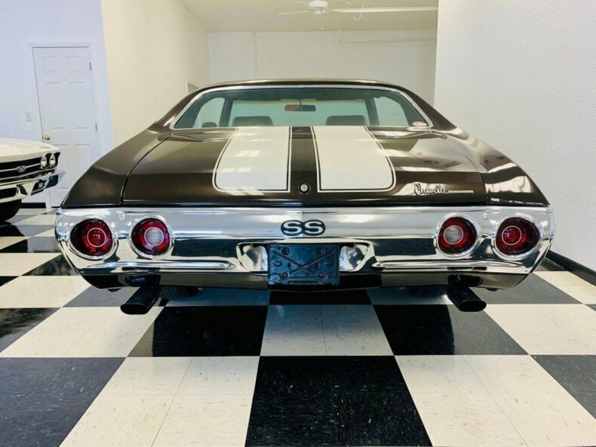 1972 Chevelle SS 454, 454 Engine, TH400 Automatic Transmission, 12 Bolt Rear End, F41 Suspension, Power Steering, Power Disc Brakes, Bucket Seats with Center Console and Staple Shifter, Retrosound Radio, Full Gauge Package including Functional Tachometer, Functional Cowl Induction Hood with Hood Pins. Car is finished in its Factory Correct Midnight Bronze (Code 68) Paint!