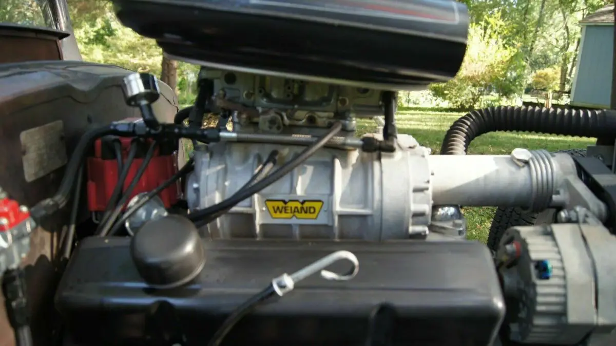 a monster 383 Stroker with a Weiand Supercharger! TH400 trans and Lokar shifter works perfect and allows this machine to be driven with ease!