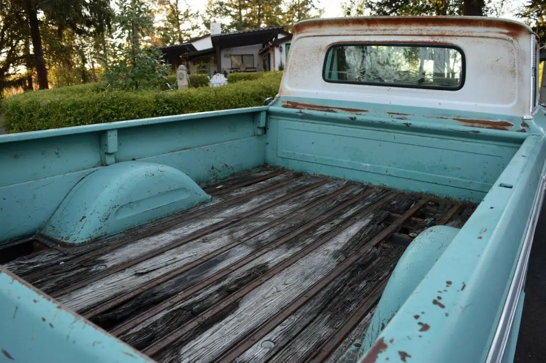 This is an original truck in almost every detail. It has been upgraded and refined in running gear and power train without changing the rare and tough to find cancer free patina body. There are character dents to and fro but the doors close easily and have solid bottoms and jams. This was the first year of Factory installed 327 V8, Three Spd Auto trans, Dash Tachometer, Power Brakes, AC, 2 Tone paint, Posi-trac and Chrome front grill and bumper. It was used most of it's life as a camper not a hard working ranch truck. So the bed metal and paint is very nice condition. It was mostly driven on asphalt not dirt roads. It has an after factory spare gas tank and storage box. The stereo is newer but not hooked up. I have owned this truck for many years and spent countless hours getting it right. I would love to see it turned into a lowered rod. The patina is priceless and would be the ultimate old farm truck hot rod. Any Questions call Chris 541-621-1553.