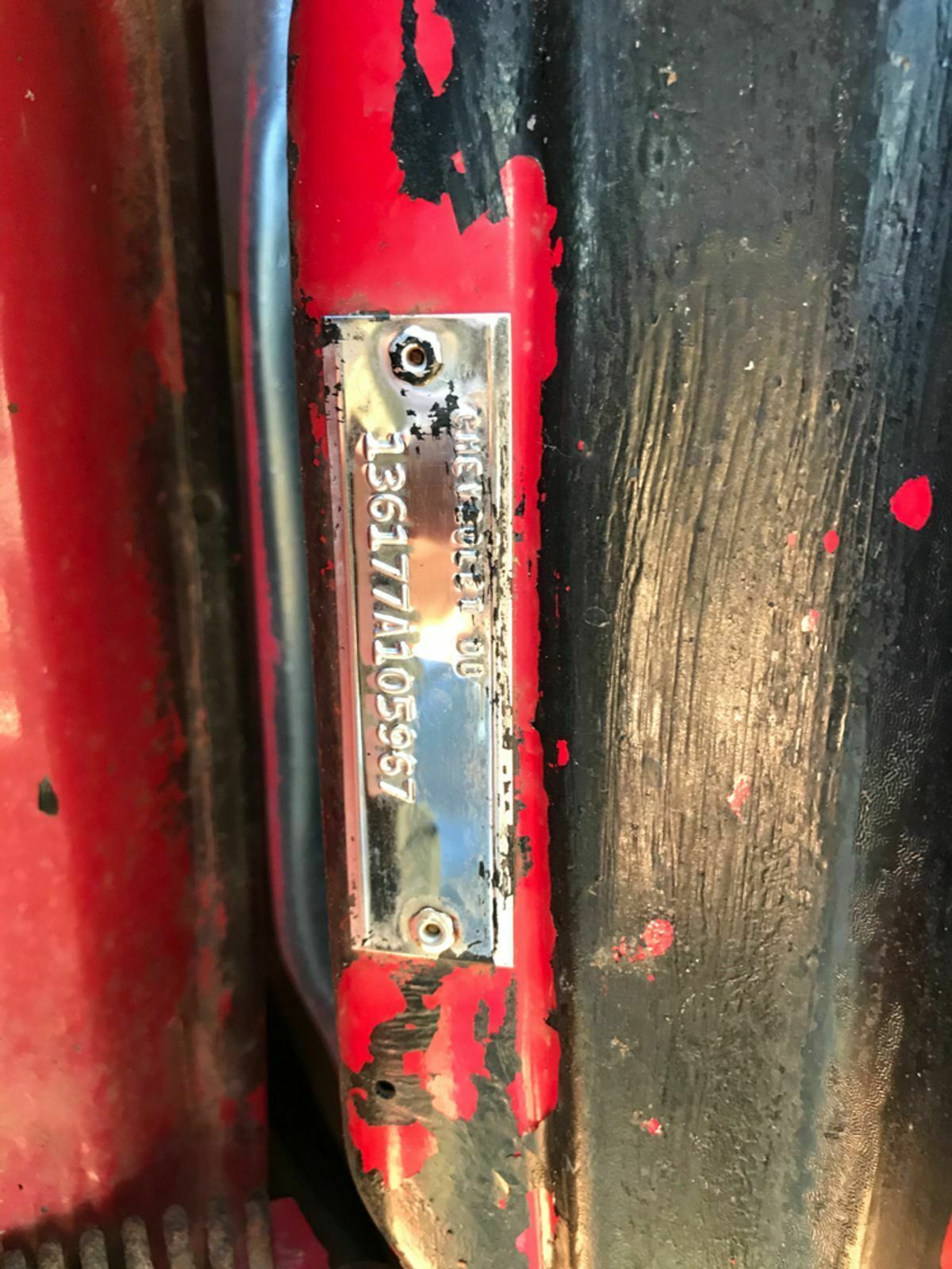 Code A built at ATL Plant, Trim 761-A Black, paint code R-2 Bolero red, PS, PB, A/C a very solid dry Texas car please view all 90 pictures including detailed chassis and floor pictures. The floors are very solid a great basis for a resto-mod. The car rolls and steers we offer worldwide shipping. The trim tag and VIN tag are clearly pictured in this listing.