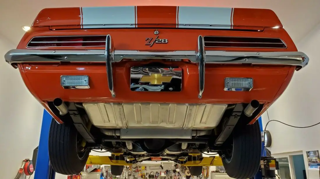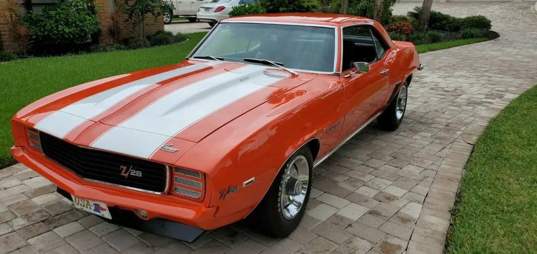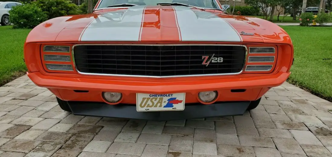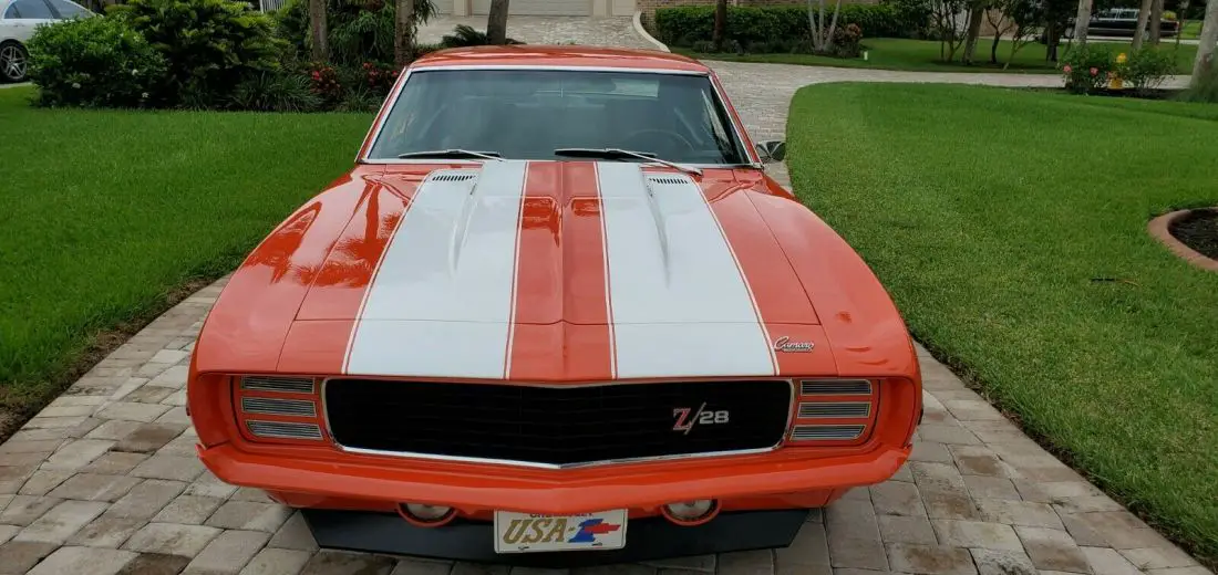 Awesome 69 Z28 RS from private collection, X33D80, numbers matching 302 motor casting #3956618, Muncie 4-speed,12 bolt 4:10 Posi, power disc brakes, Rosewood wheel, rear window defogger, radio delete, console gauges, bumper guards. Complete frame on restoration about 6 yrs ago, driven 200 miles since. Rally Sport package with rare factory Endura bumper. One of Camaro's best color combo on this car, runs as good as it looks!