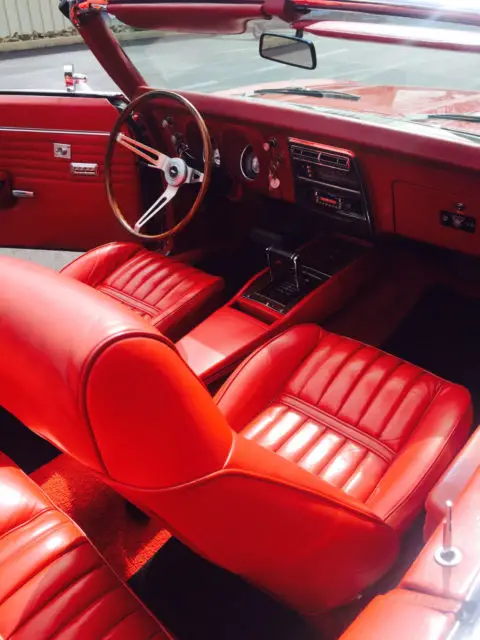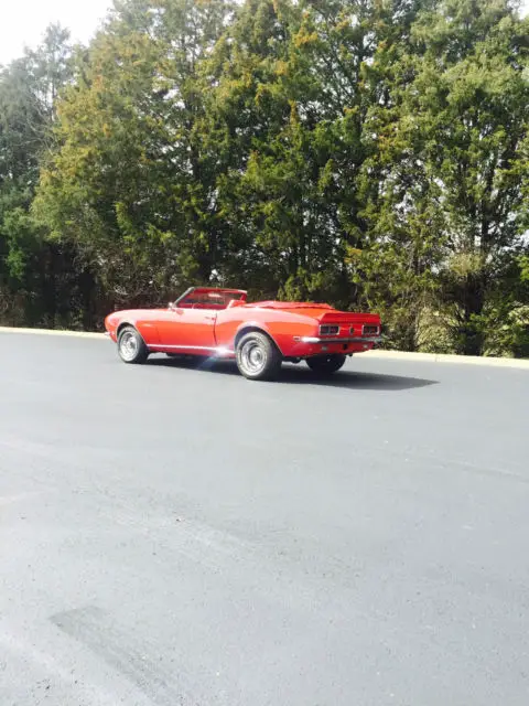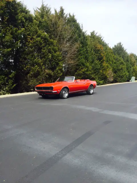 1968 CHEVROLET CAMARO RS CONVERTIBLE WITH FACTORY AIR, 327 4-BARREL AUTOMATIC, ORIGINAL NUMBER MATCHING ENGINE AND TRANSMISSION, POWER TOP, POWER STEERING, POWER BRAKES, SPORT WOODGRAIN STEERING WHEEL, CONSOLE, AM/FM RADIO, 15" RALLY WHEELS with NEW TIRES - P215 FRONT P255 REAR, ALL ORIGINAL SHEET METAL, EDELBROCK INTAKE, HEADERS, RED with NEW WHITE TOP and RED INTERIOR.