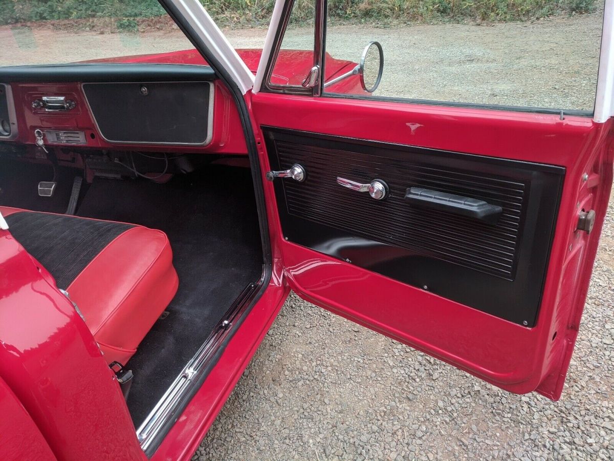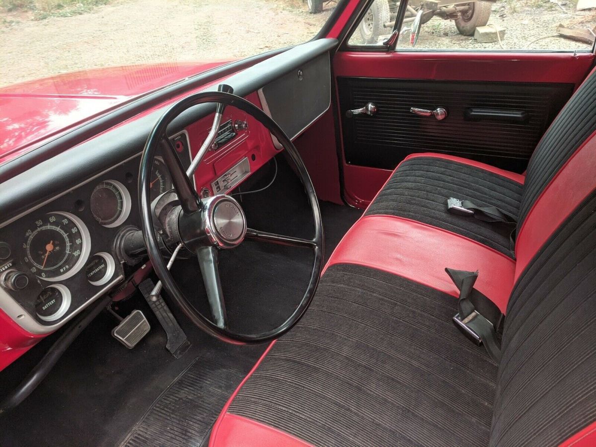 Seller's NotesFactory 67 SWB frame, the cab was super rusty so I did find a almost rust free 67 cab. I replaced the rockers and the passenger kick panel. I bought a brand new bed kit. The following parts are new, CPP gas tank, drop spindles with disc brakes, shocks, wheels and tires, carpet kit, door panels, mirrors, headers, exhaust, windshield, back window, fresh paint. The few things that need fixed is the wipers intermittently don't work, fuel gauge doesn't work, and LR axle seal is starting to leak. I haven't drove it a ton but it seems to run and drive excellent. see the truck at https://youtu.be/hJwjPbXCQ9gExteriorsee the truck on YouTube https://youtu.be/hJwjPbXCQ9gInteriorI had big plans to airbag it. But never got to it so it has been c- notchedEngine350 engine and turbo 350 pulled out of a 72 donor truck. It seems to run excellent, has a mild cam. I have less than 500 miles on it.Created on the eBay Motors app