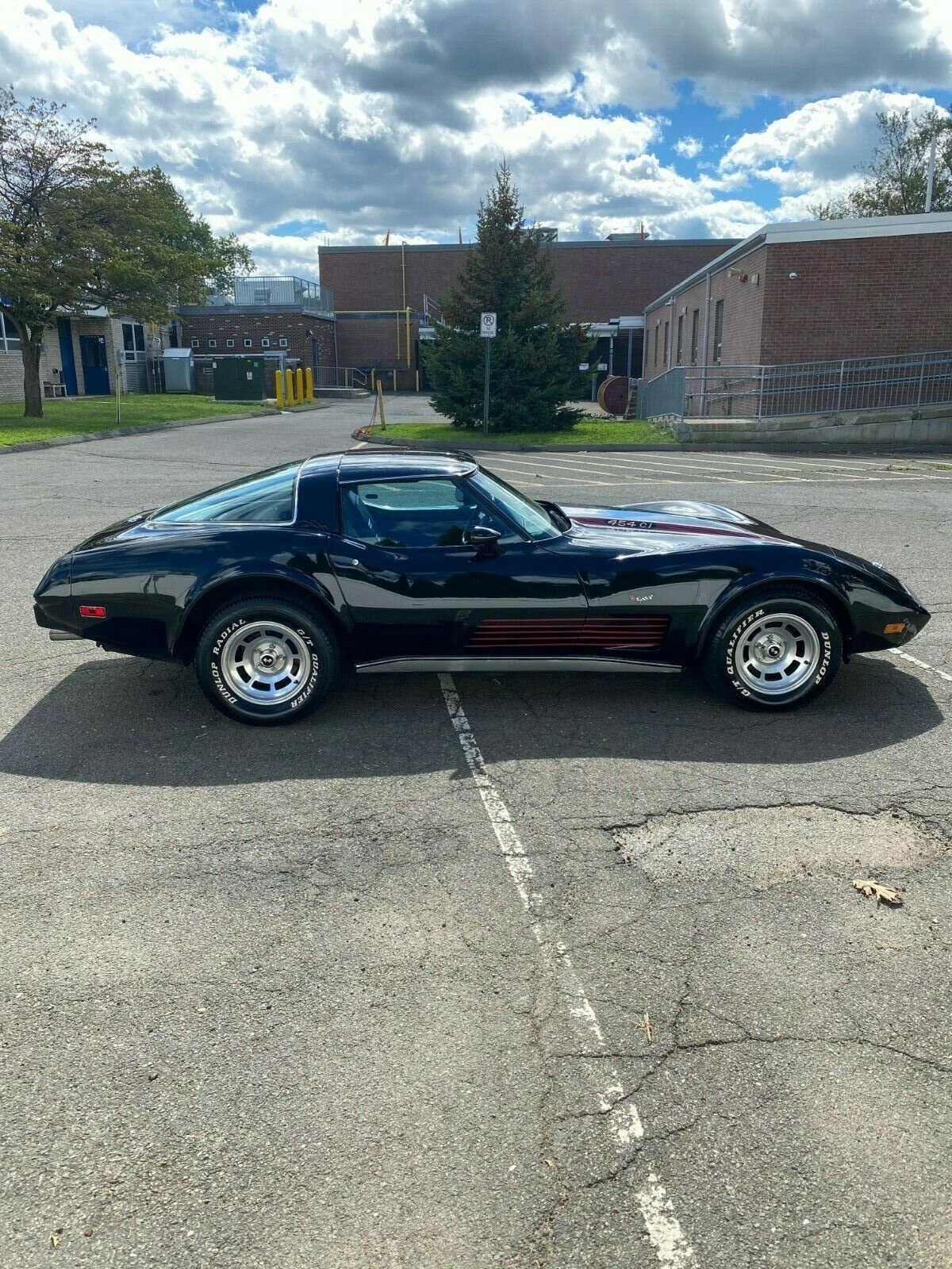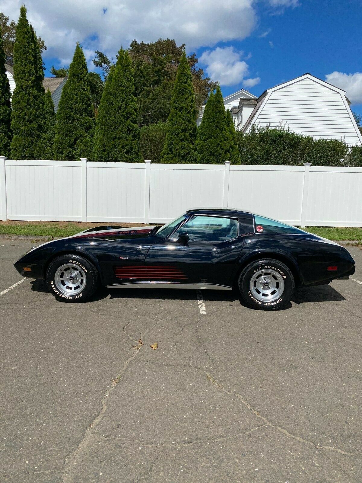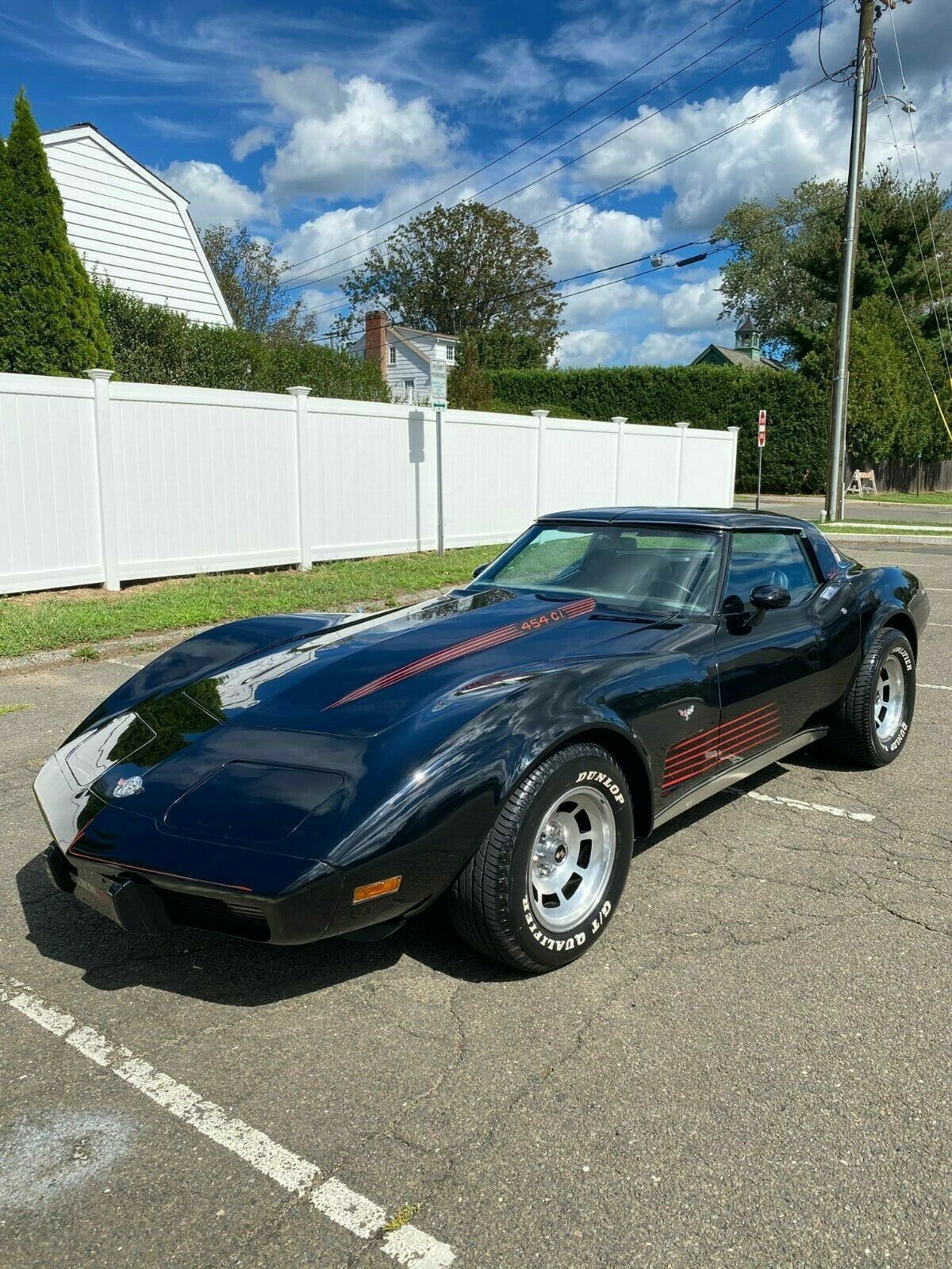 Gorgeous 1978 high gloss black corvette. 460 horse power/454 cubic inch engine with 23440 mile, verified engine casting 361959, with LS-6 camshaft. All documented. Beautiful Von Dutch style pin striping. Power windows, power steering, power brakes, rear window defogger, AC, sport mirrors, gymkhana suspension, positraction axle with optional highway ratio, Borg-Warner 4 speed manual super T-10 transmission, tilt-telescopic steering wheel, power antenna, t-tops have no leaks, new clutch, The rear leaf spring has been upgraded to a mono leaf fiberglass spring. Brakes are new, along with new tires, new seats, new door panels, new carpet, new power antenna, new headers and exhaust.15 inch factory wheels with white letter tires, 4 barrel carburetor, aluminum intake, Mallory distributor and ignition. This car was professionally ground up restored in 2008. If you want the early 1970s Corvette 454 muscle car with the upgrades of a 1978 without paying over $40K, you can get this car for about half the price. Absolute head turner.