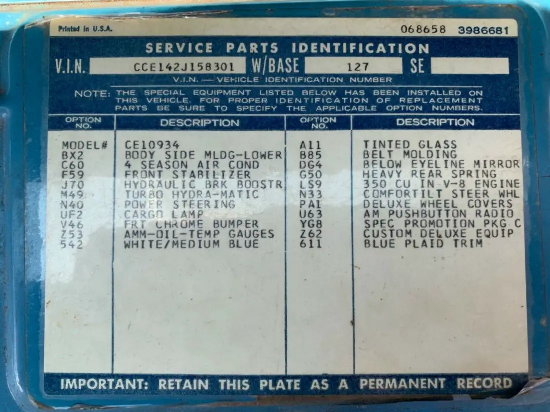 Original old school stile, spend 48 years to make this beautiful patina, a real survival, original v8 350, transmission just rebuild a couple years ago, shift pretty well, 4 new tires.