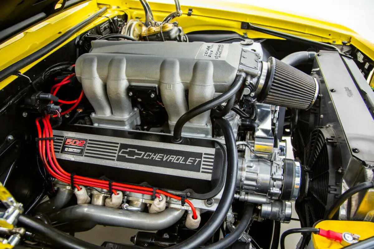 502/502 GM crate engine Ram Jet fuel injection Power 4 wheel Wilwood disc brakes Power steering Tremec 5 speed transmission Vintage air conditioning Aluminum radiator with dual cooling fansUNDERCARRIAGE: