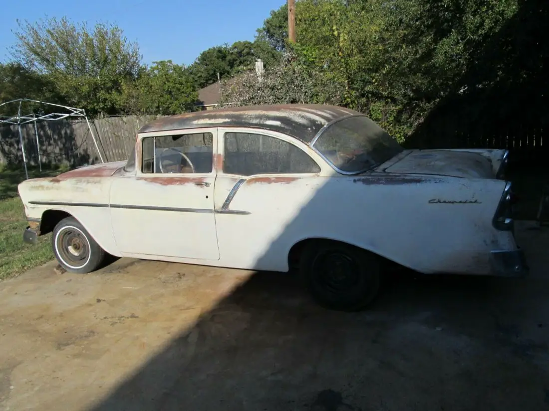 Chevrolet Bel Air/150/210. Chevrolet Bel Air/150/210. SITTING SINCE 1963. THIS IS A FACTORY 150 THE 150 WERE DESIRED FOR RACERS BACK IN THE DAY, BECAUSE OF BEING SO LIGHT WEIGHT AND ARE GETTING HARDER TO FIND. THE 56 ARE ESPECIALLY HARD TO FIND, ESPECIALLY ONE IN THIS CONDITION, THAT HASN'T CHANGED OWNERS OVER THE YEARS. i JUST DON'T HAVE THE TIME TO BUILD IT. THE CAR IS STRAIGHT. FLOORS ARE PATCHED, EVERYTHING BUTT WELDED AND WELDS GROUND. TRUNK IS NICE,ROOF NICE, FRAME NICE TAIL PANEL IN THE REAR THAT ALWAYS NEEDS REPLACING IS ALSO NICE. ORIGINAL PANELS EXCEPT MAYBE THE HOOD. THE BEST THAT I CAN TELL ON THE CAR.I BELIEVE THE COLOR WAS WHITE WITH A BLACK ROOF. THIS IS A EASY BUILD,HARD WORK ON FLOOR PATCHES DONE I DON'T HAVE A TITLE AND IT TAKES 6 MONTHS TO GET ONE IN TEXAS, SO PROBABLY EASIER TO OBTAIN ONE IN YOUR OWN STATE. ***** DEPOSIT REQUIRED $300 IMMEDIATELY END OF AUCTION ***** CLEAN TITLE WAS FOR LISTING PURPOSE ONLY, YOU WILL HAVE TO OBTAIN THIS TITLE