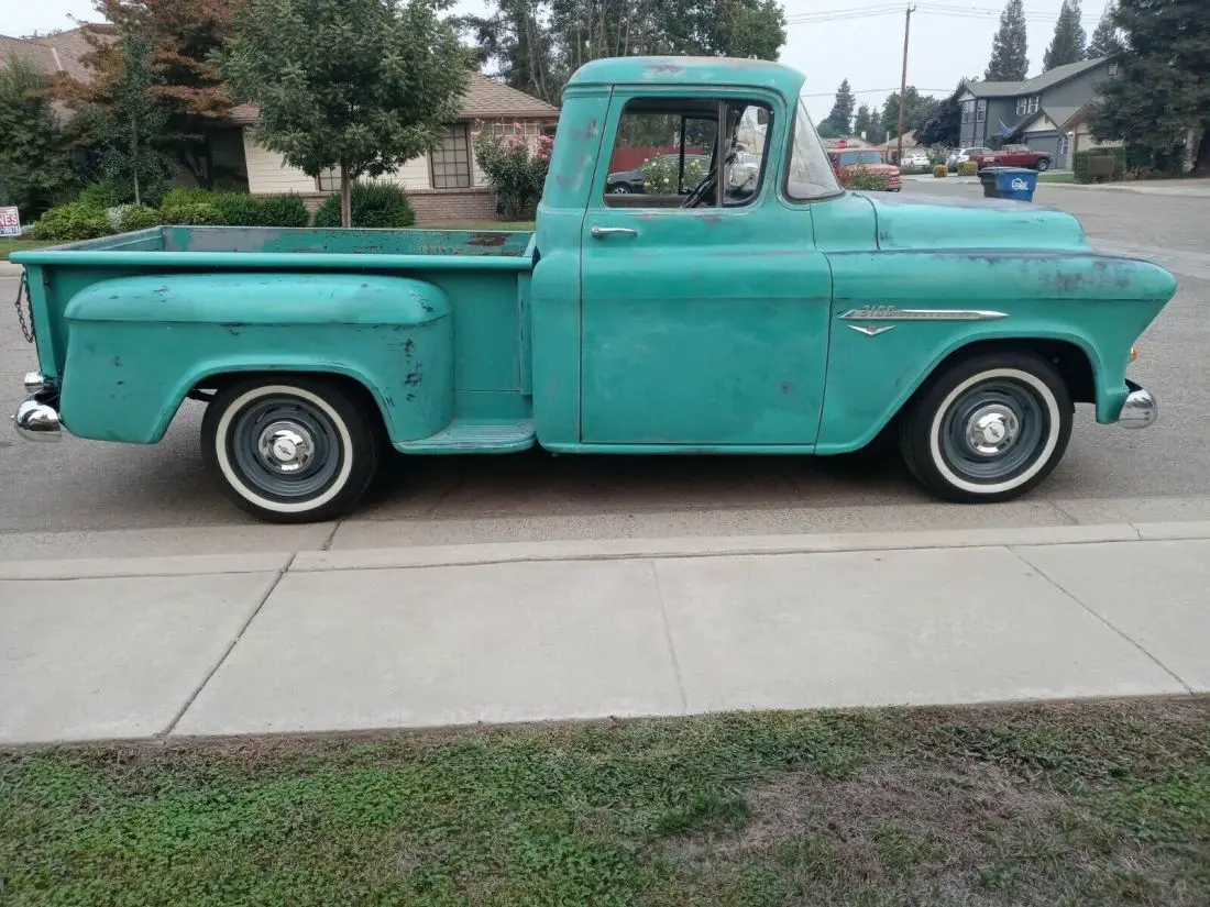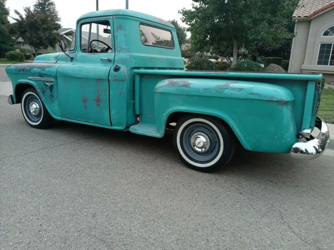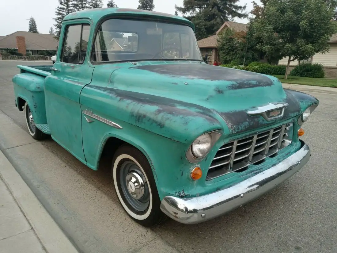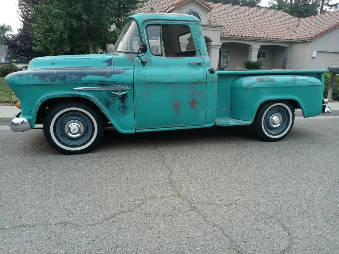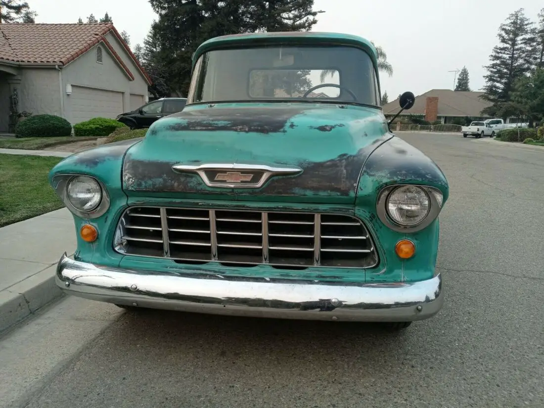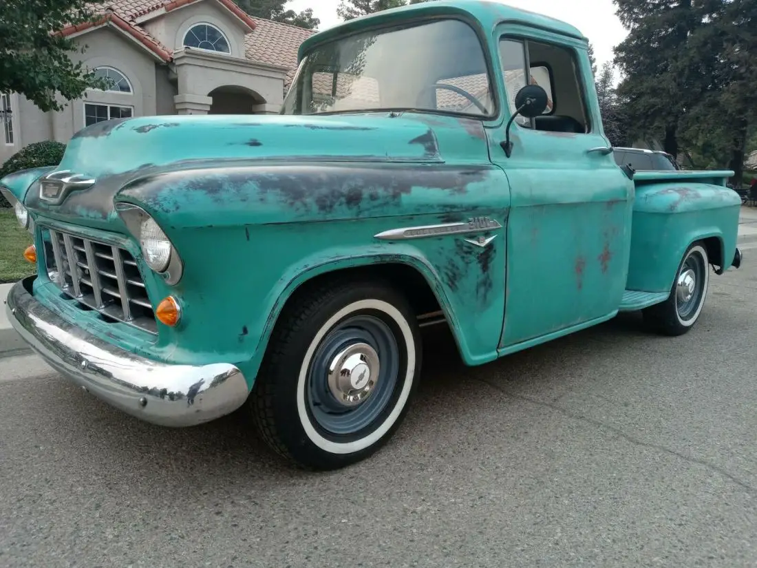 Up for sale is a 1955 Chevy Truck. This truck is a original V8 truck. Great truck to restore back to original condition or take the body and place on a upgraded frame and keep the awesome patina look. Or just drive it like it is. This truck has so much potential. Has a original 265.cu.in. motor and a 3 speed manual transmission. This truck has had the complete wire harness updated with a 12V system. Interior was reupholstered with original bench seat. Truck still has original paint on the inside. Its very hard to find a truck with all panels having original paint like this one. No major dents and bed is still in good condition for its age. Still has original wood in bed. Any questions call 559-960-8764 or message me thru eBay.