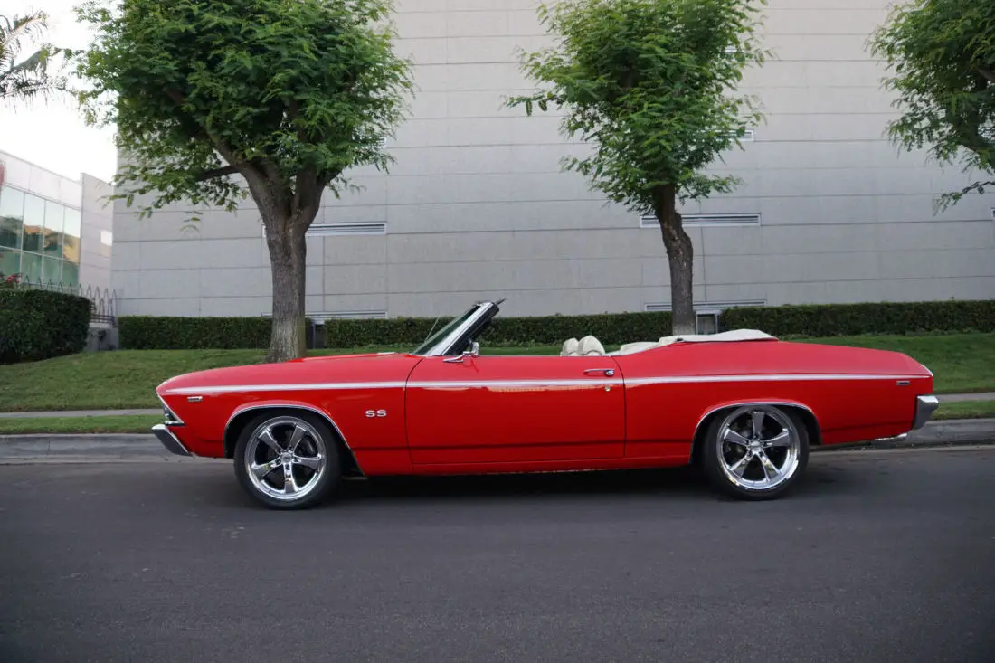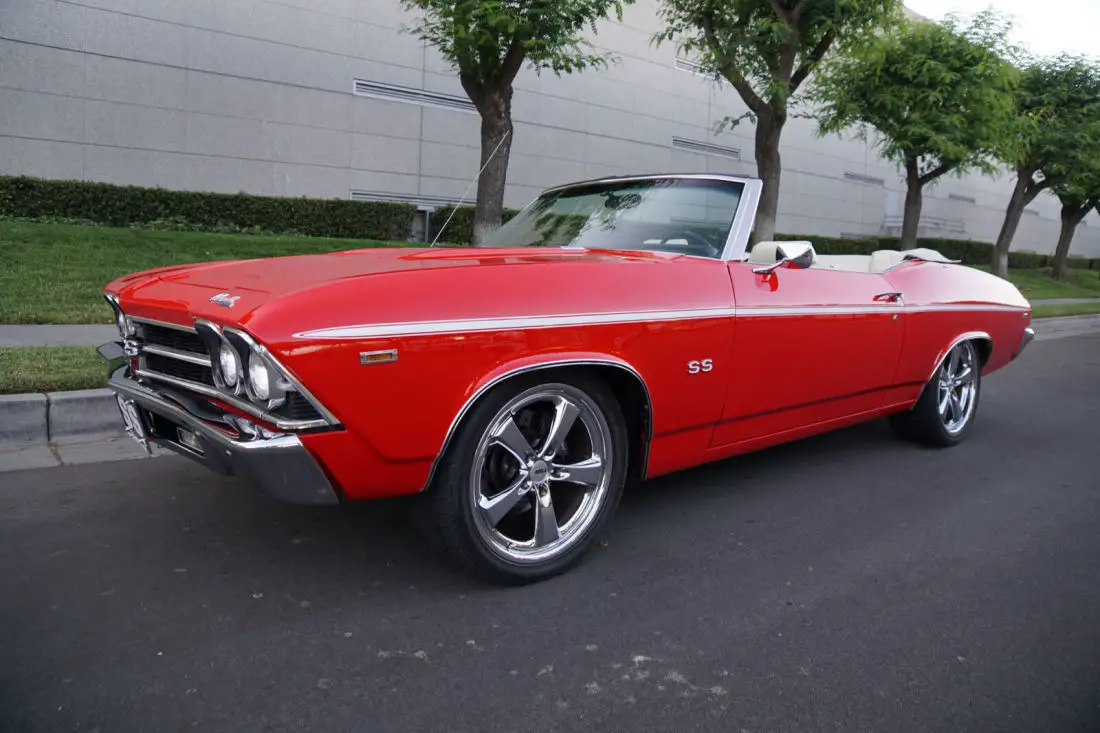 West Coast Classics are proud to present a beautiful example of this customized 1969 Chevrolet Chevelle 2 door Convertible with SS emblems and hood and built with an LT1 5.7L V8 engine matched to a 6 spd manual transmission and a 12 Bolt Posi-traction limited slip differential rear end and which is finished in a striking classic 'Red' tribute color with with a 'White' interior. Ready to show or cruise.