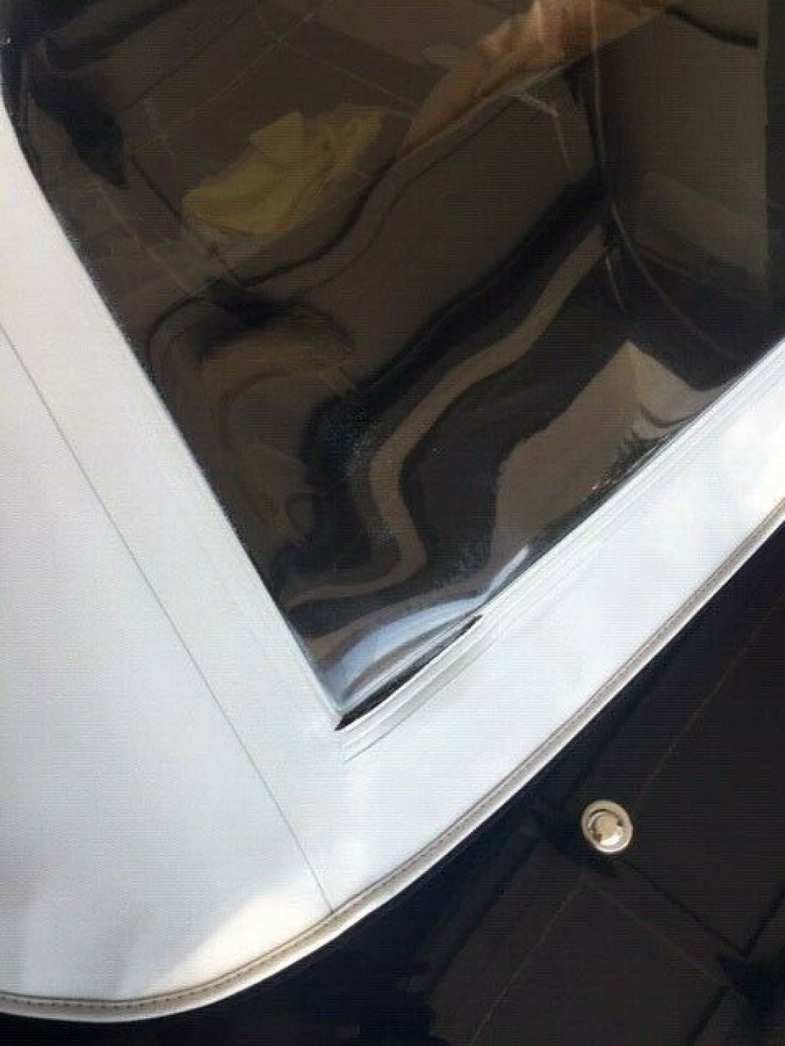 The horn needs work. The body contains a small paint blemish on top of the driver side fender (see picture). The rear bottom corner of the convertible top has a small cut between the plastic window edge and the bottom of the top material (see picture). The windshield wipers work great but the windshield washer pump needs attention. The “new” water temperature gauge doesn’t work even though I replaced the water temperature sensor with the factory correct one.