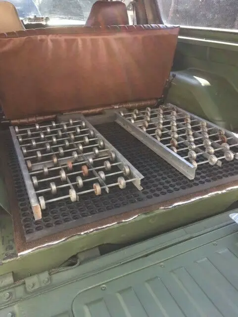 In the cargo area, custom deck box (redwood) on conveyor rollers for easy slide in/out.Everything you might need, including medical supplies, tools, tow chains and spare parts (including starter and alternator). 2000W continuous power converter (DC to AC) hidden in a first aid box in the back (making use of the dual alternators/batteries). Also comes with a M101 trailer (new cover still in the box).Trailer gone over, painted to match.Prefer to sell together.