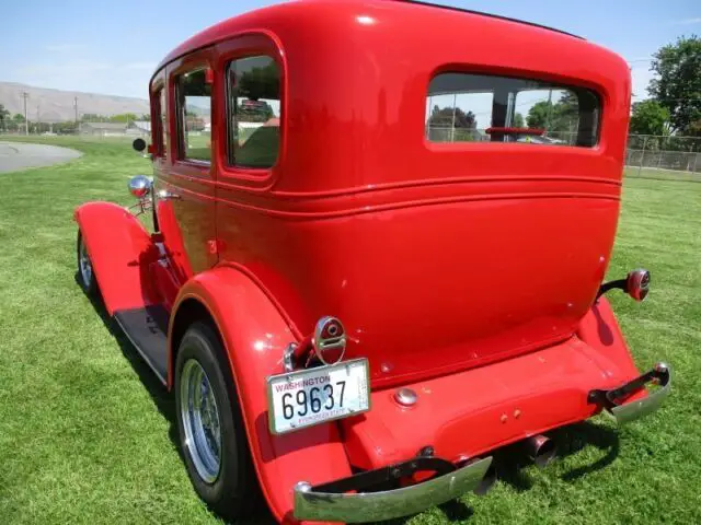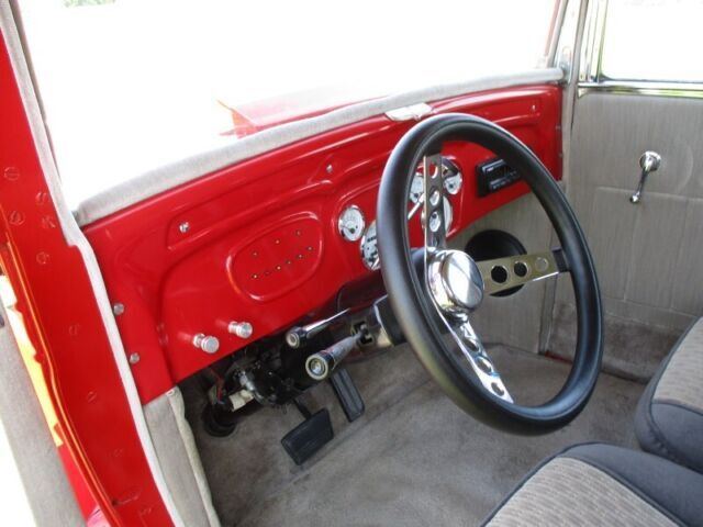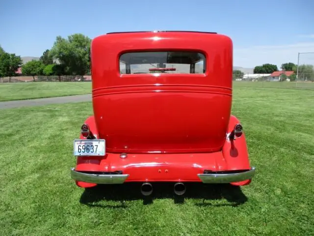 Up for sale is a very nice looking and driving 1932 Chevrolet Streer Rod. This little Chevy is running a 260 Olds V8 with its TH200 Metric transmission and GM rear end all out of the same car. The drive Trane only has had only 16,000 miles on it. the car has only 14,092 miles on it from finish. (Runs and drives great) The frame was boxed in the build and a Ford Mustang II front end was used up front with Thunderbird tie rods and Grenada front disk brakes. It is running new Firestone tires on Appliance chrome wheels with 195/70R 14's up front and 215/70R15's at the rear. A fresh alinement has also just been done on the car. (It is ready for the road) The body is very nice with new wood throughout the car. The body has all its original medal, with suicide door at the rear and all doors open and shut nicely. The fenders are fiberglass and fit very well. The front lower valance below the grill shell was made of medal to accommodate the Mustang II front end. (Nice job) Paint is 91 Viper Red over very nice body and a Juliano's car top insert was also used in the build. The top insert still looks new. Paint dose have a very few small nicks. (can't see in the pictures, but please look at all picture closely) A pair of 1932 Chevy taillights are at the rear with blue dots for its running, turn and brake lights. (Nice look) It has had a Ron Francis wiring Harnes installed and it's running a 12-volt system. The interior is nice with all new side windows made of safety glass and windows roll up and down as they should. All inside window cranks, door handles and dash astray are original and fully operational. All the original window moldings have been chrome plated and look nice. Custom upholstered seats, headliner and door panels are done in two-tone cloth with bucket seats up front and all seats are with safety belts. Dash is also very nice with custom gages with white faces and add to the look. It has an older AM FM Cassette player for toons with a power antenna. This little Chevy runs down the road at 70 all day long with no bump steer and is a joy to drive. A car cover comes with this car. I'm listing this beautiful little Chevy Sedan for a friend and builder and will take all questions to him. Buyer is responsible for shipping and all shipping costs. We will help with loading on our end and in anyway we can. for your questions, please call Bill (208)750-0000.