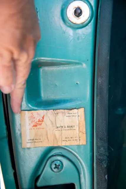 - Salesman's business card is attached to the driver's side door jam