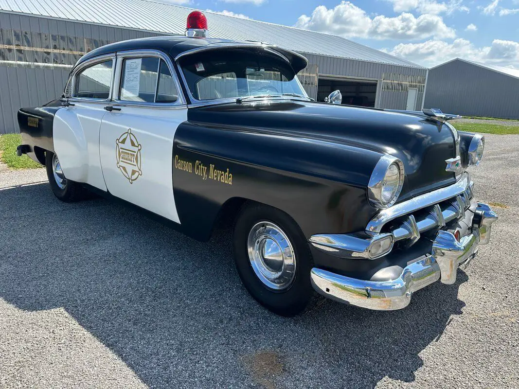 This is an excellent Carson City, Nevada Sheriff's Deputy Police Cruiser example of a 1954 Chevrolet 210. With top mount siren, front siren lights, and horn siren this is perfect for any collector, museum, or something fun to cruise to your local car show in. The lights and sirens all function. The interior has been restored and in excellent condition with the body in a condition to match. Under the hood of this police car you will find the vehicle being powered by a 125 horsepower 235.5 cu in. inline 6 cylinder engine mated to a 3-speed automatic transmission. This vehicle also comes to you with only 64,268 actual miles as stated by the previous owner and runs and drives excellent. This is a great opportunity to own a very unique and low mileage example of the Chevrolet 210 in full police dress.