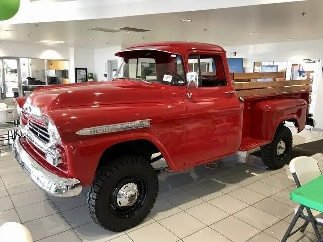 *4X4 *4WD* AWD*. Red 1959 Chevrolet Apache NAPCO 4wd 4 speed manual 235