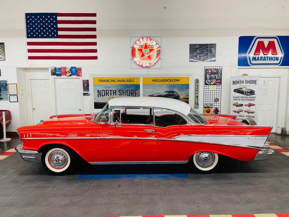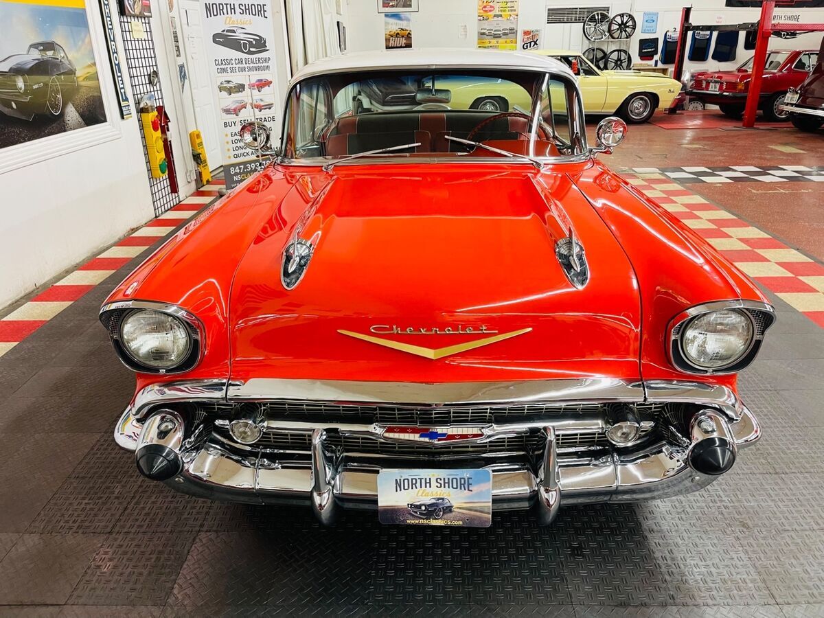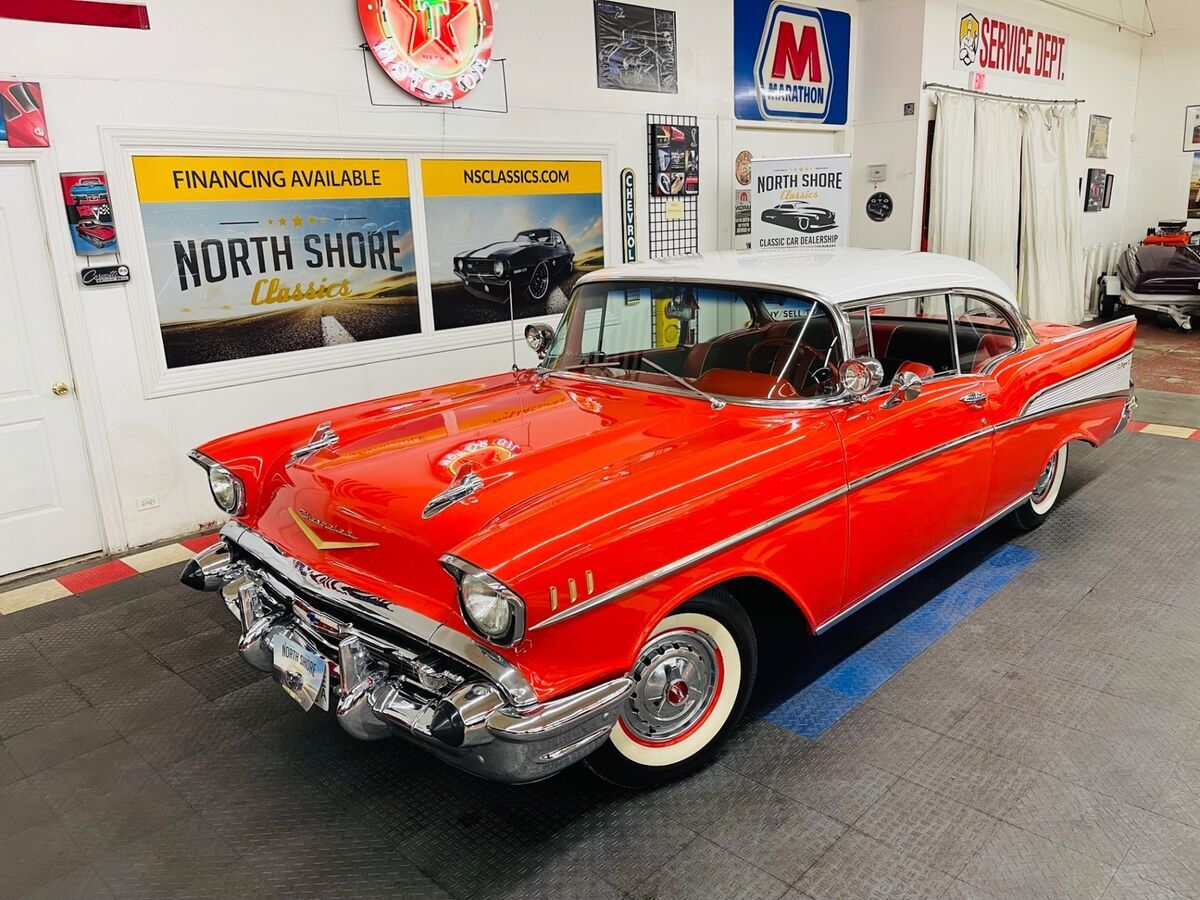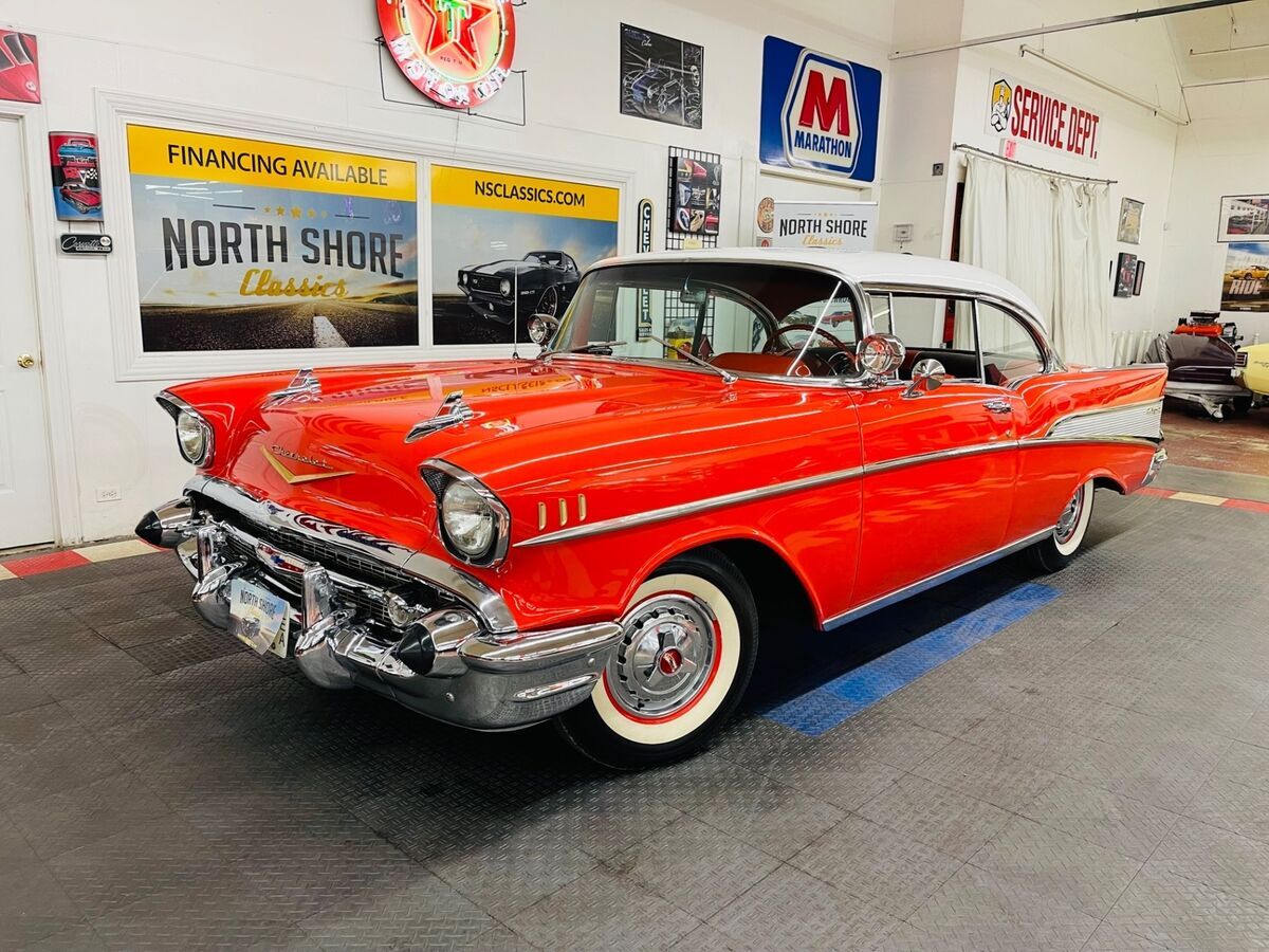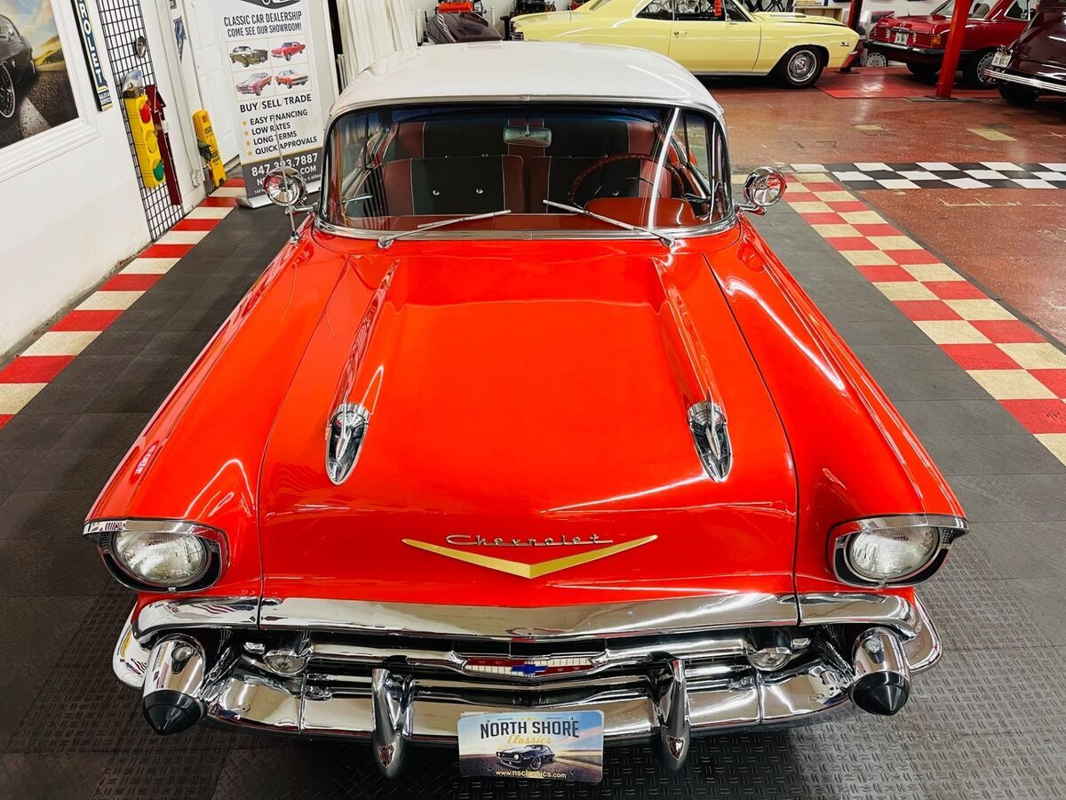 *1957 CHEVROLET BEL AIR *2 DOOR HARDTOP*CORRECT 283 ENGINE*AUTOMATIC TRANSMISSION*FACTORY POWER STEERING*VERY CLEAN SOUTHERN VEHICLE*NICE PAINT (a few small flaws exist throughout)*ORIGINAL STYLE RED AND BLACK INTERIOR*FACTORY FENDER SKIRTS*FACTORY CONTINENTAL KIT*RUNS AND DRIVES GREAT*NICE CHROME AND TRIM*FACTORY HUBCAPS W/ WHITE WALL TIRES*DUAL EXHAUST**CALL US TODAY - 844-652-8767**ASK US ABOUT OUR EASY FINANCE OPTIONS**WE SHIP WORLD WIDE