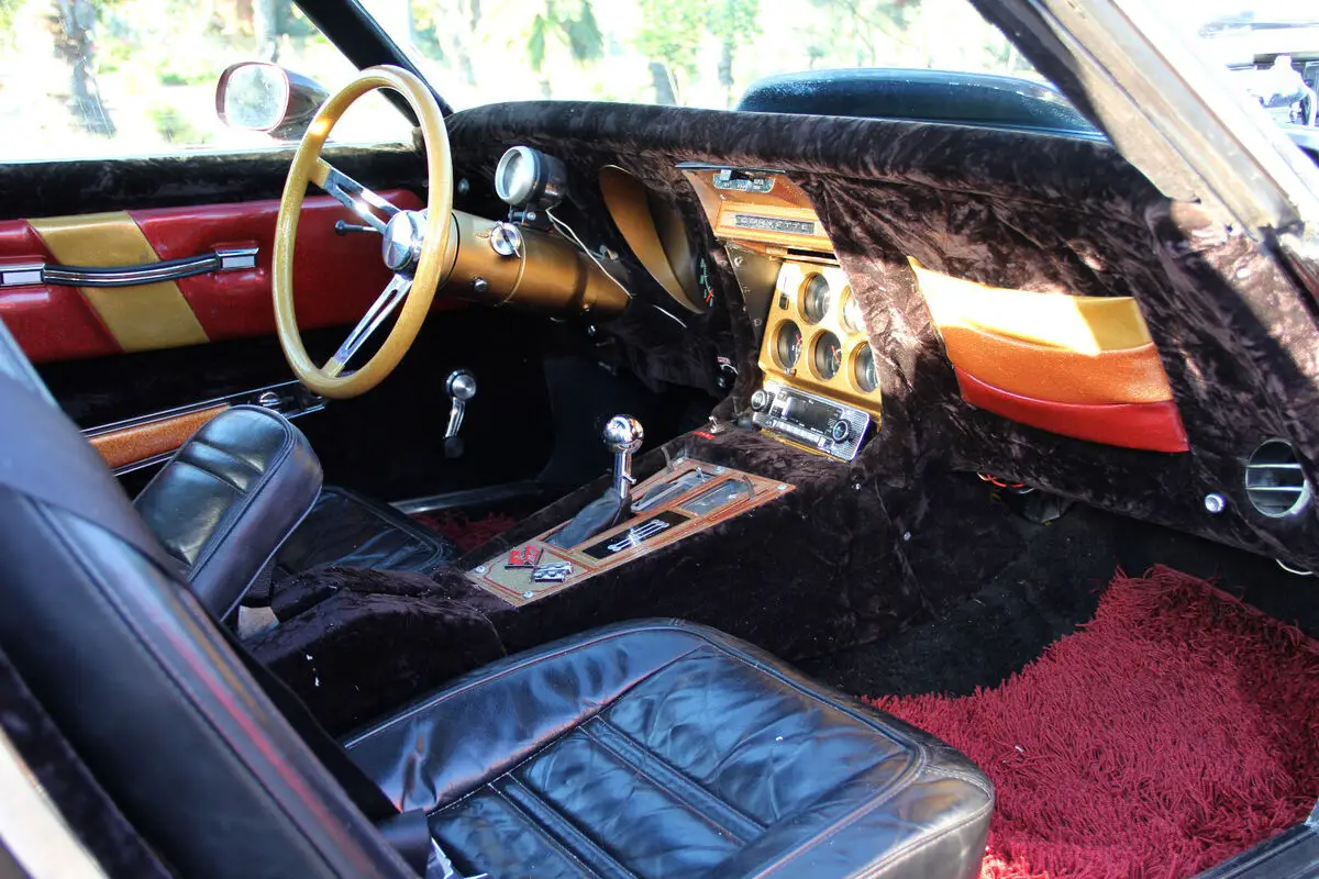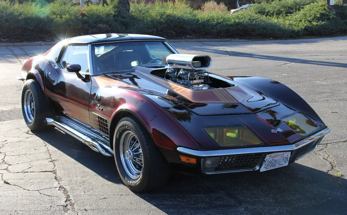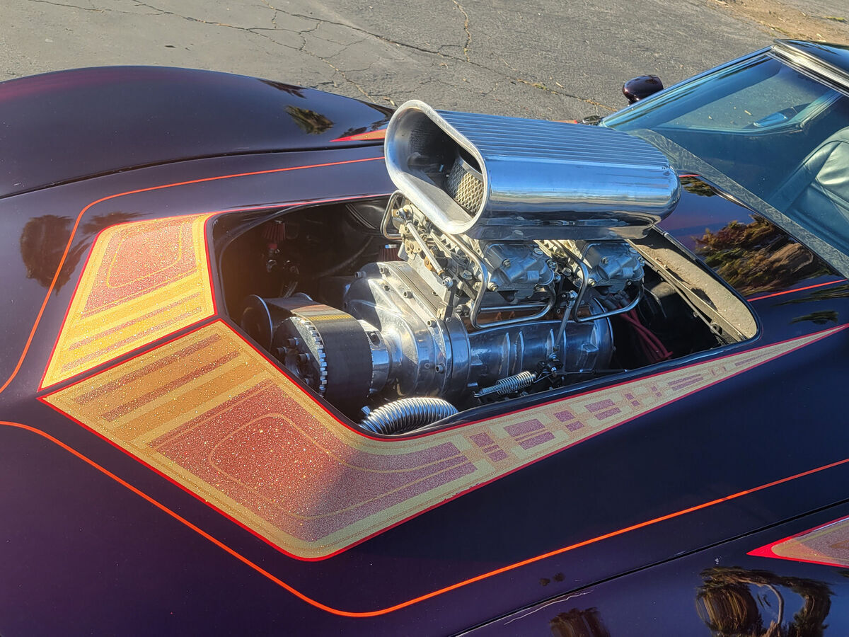 Isn't it time to get yourself a present for the holidays? This is a survivor 1970 C3 Corvette Stingray Hot Rod, with custom lowrider style paint, custom interior, supercharged engine, 4 speed manual transmission, shag carpeting, roll bar, sparkle vinyl interior accents, wire wheels, side pipes, polished aluminum intake scoop, chrome accents everywhere, custom pinstriping, and much more.