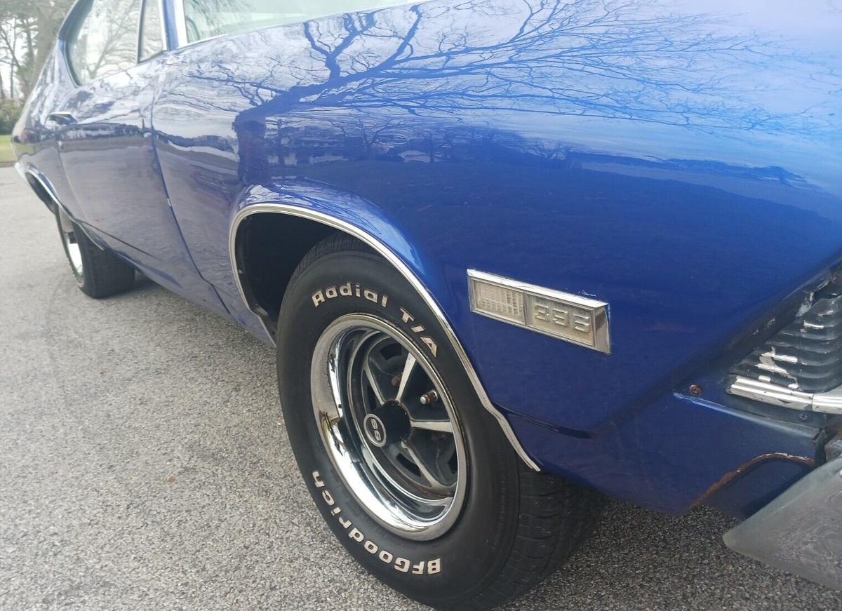 VERY NICE 1968 CHEVELLE SS 396 TRIBUTE, BIG BLOCK 4 SPEED WITH BUCKET SEATS, DISC BRAKES AND 84K ORIGINAL MILES!Please LEAVE A PHONE NUMBER when messaging or bidding. I NEED TO BE ABLE TO REACH YOU otherwise I will cancel your bids. I don't have time for games or scammers.Full YOUTUBE walkaround, startup and driving video here:https://www.youtube.com/watch?v=3sQi3qLmd9sOPTIONS:Power SteeringPower DISC Front Brakes396ci Big Block V8 Engine4 Speed Manual Transmission (muncie)10 Bolt Rear EndDual 3" Flowmaster ExhaustStandard Bucket Seat Interior w/Console14" Steel SS wheels with caps wearing BF Goodrich Radial T/A RadialsIn dash Tachometer (factory, not working)Vehicle hails from sunny Texas, collector owned and operated for the last decade at least. I believe it was a 3 owner car. Stored indoors and serviced regularly.Body is FAIRLY NICE overall, with older paint probably 15 to 20 years old. Some imperfections and a few spots where it has been touched up as you can see on driver's door and passenger rear quarter. Some bubbling by lower doors and lower front quarters. Roof has some delaminating as well in a couple spots, but overall it looks good from 20 feet away with good shine and luster overall, although it needs to be completely redone. Fairly straight down the sides without a ton of filler. Bumpers are older and should be replaced for a nice car. NEW wheel well moldings as well.Interior shows nicely. NEW carpet, NEW front and rear seat covers, NEW headliner (needs install, all bows are there), NEW dash pad cap, NEW rear package tray. Door panels show some wear at bottoms. ALL NEW WEATHERSTRIPPING for doors, quarter windows, roof rail etc.Mechanically it starts up well, idles good and has plenty of power. Aluminum intake and headers, mild loopy camshaft, along with Holley carburetor and HEI distributor are just some of the upgrades. Transmission is a Muncie 4 speed that shifts good, shifter is a little sticky at times so linkages will have to be adjusted properly for good operation. Good brakes overall and car steers good. It runs and drives but I would go through it before taking it on any long trips. I've just driven it around my neighborhood and to the store and back a few times. I'm sure there are a few things that don't work: missing radio, couple of bulbs may need replacing, horn, no heat (disconnected) and maybe a couple other minor things i can't remember right now SO PLEASE BE AWARE THIS CAR IS NOWHERE NEAR PERFECT AND WILL REQUIRE RESTORATION!!!.Underside has SOLID frame, SOLID FLOORBOARDS and EXCELLENT TRUNK. Fully Undercoated to prevent any surface rust buildup.Overall a GREAT 1968 CHEVELLE SS 396 4 speed tribute that you can make your own and take to the next level with some restoration or do some tlc and drive as is.
