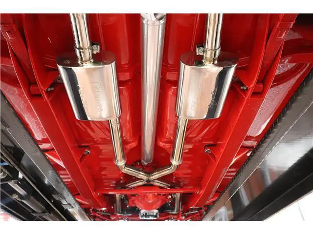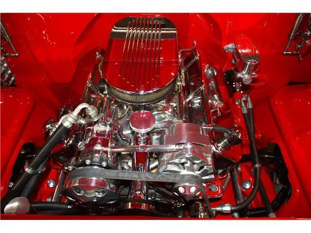 This gorgeous 150 Custom’s changes are the result of a four-year custom build completed in 2012. With an emphasis on show quality appearance, the 454 CI V-8 Chevy big-block engine now features a polished intake manifold, valve covers and custom air cleaner. There are quality headers feeding into a dual exhaust system to let it breathe freely, with the engine itself tucked down into a beautifully redone engine bay with a smoothed firewall, custom radiator cover and billet hood hinges. Behind this is a 4-speed manual transmission, and this car’s refreshing also included power steering and Wilwood 4-wheel disc brakes with polished surfacing visible behind the wheels.That sense of quality continues inside with the customized red leather interior.