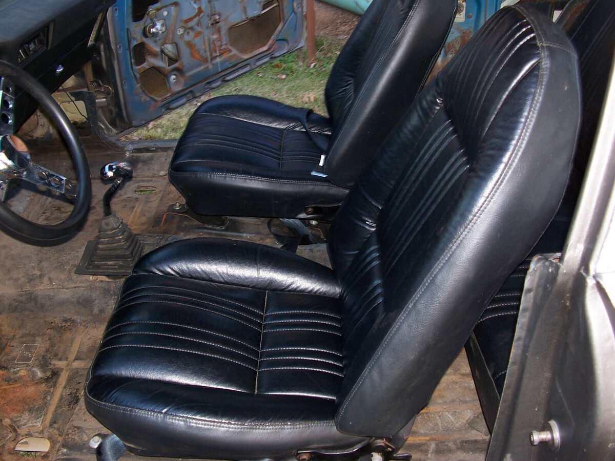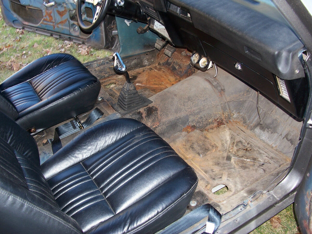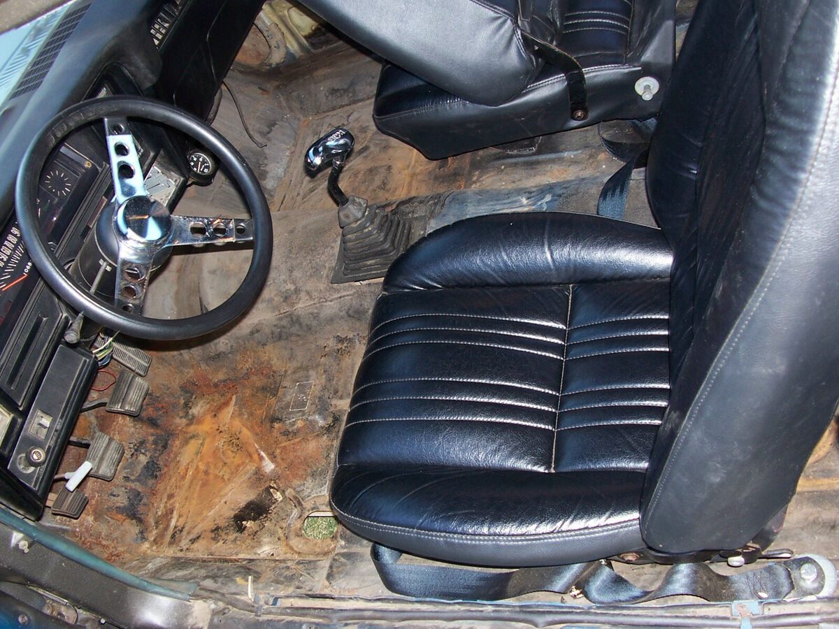 Floor pans, trunk pan, rear quarter have been repaired. Factory glass is all good. Have a lot of the window trim. Bucket seats and rear seat have been redone. Nice Torq Thrust wheels.