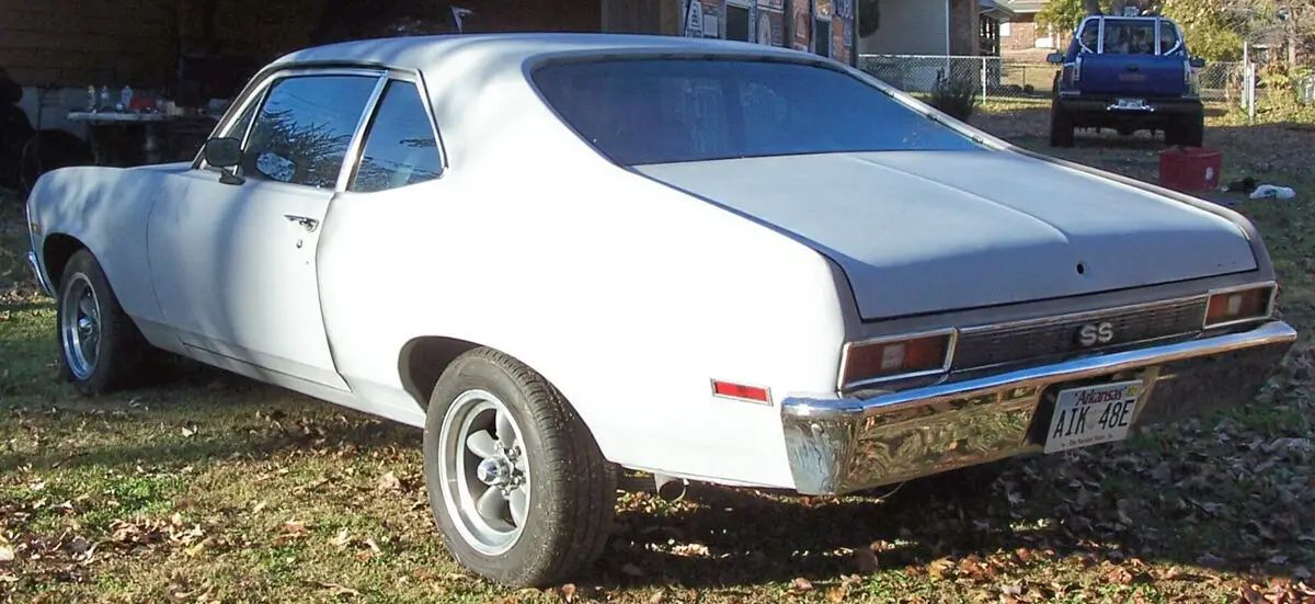 350. 5-speed manual with hydraulic clutch. Power steering. Edelbrock intake with Holley. New gas tank. New factory-style dual exhaust with Flowmaster 40s out the rear sides.