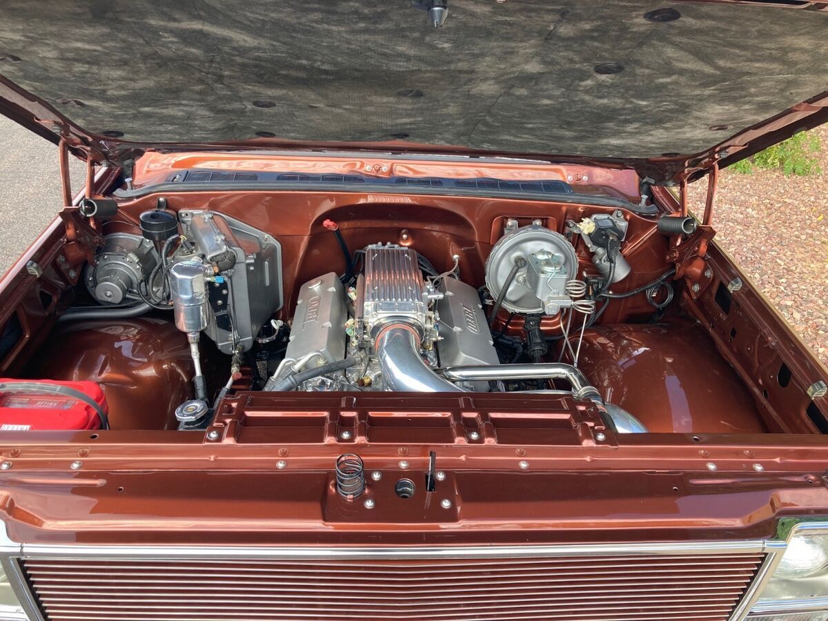 Billet Specialties front accessory drive system with XL Sanden SD7 compressor, Derale dual electric fan module, Custom made aluminum intake tube with cold air box. Engine block and transmission painted to match body. Factory AC components remain so the system can be cold in Arizona. Professionally built 700R4 overdrive transmission. 12 bolt rear posi-traction with new axles, 3.73 rear gears and bearings/seals.