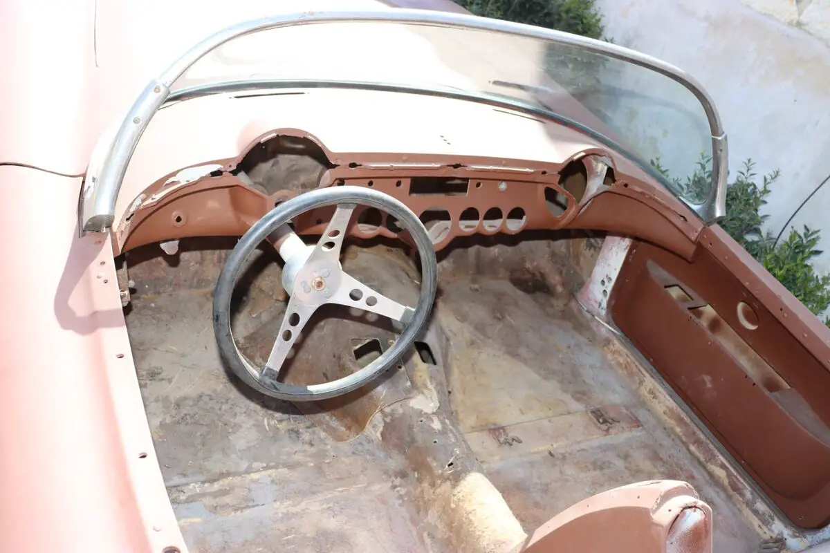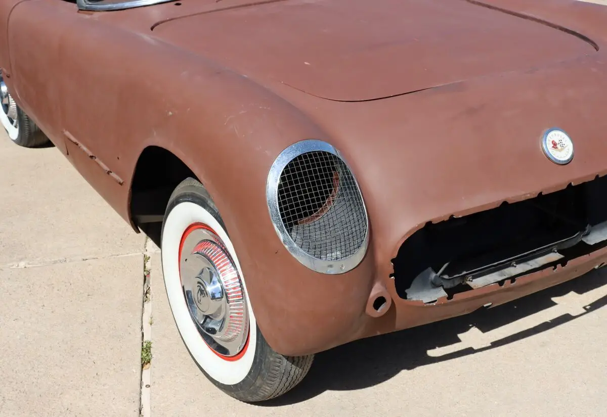 1955 Corvette project car with Texas title and VIN plate (VIN VE55S001479) with the restoration already started and much of the hard work already completed. A perfect project to restore to NCRS specifications or a high end show car. The car includes asuper nice bodyin primer, a very clean Texas frame on a rolling chassis, numbers matching block (# 3702524), numbers matching rebuilt heads (# 3703523), rebuilt Carter carburetor, buyers 3-speed Saginaw transmission (# 3845122, I am uncertain if this was originally a manual car or not), correct and rebuilt starter, OEM Harrison radiator, correct and rebuilt alternator, OEM numbers matching distributor (# 1110847), original and freshly re-plated chrome valve covers, impossible to find original distributor cover, new (and possibly NOS) ultra rare coil cover, correct AC 4931 fuel pump, 107 Delco ignition coil, OEM intake manifold (# 3711348), original gas tank, 12V Wonderbar radio with speaker power pack, all 4 seat cushions, drivers seat frame, dash eyebrow, upper door trim, lower door panels, seat back filler panels, restored and correct steering wheel, OEM tachometer, 12V clock, speedometer and both small gauge clusters, restored and correct heater, impossible to find NOS 1955 Vette only heater shutoff valve, bumpers, front and rear bullets, bumperettes, grille bar and teeth, side stainless trim (all 6 pieces), newly re-plated grille oval, headlight screens, slant back and pot metal headlight buckets, brand new headlight bezel (not those pictured on the car),OEM rear taillight bezels with lenses, wiper transmissions, new horn button, new front emblemand much more. The project rolls and steers for easy transport onto a trailer. Please inspect pictures for other included parts. A dozen or so additional pictures are forthcoming including the block, tranny, seats and more. I believe the project is 95% complete or more.Personal inspections are welcomed and encouraged. I require a $2000 non-fundable deposit within 24 hours of the end of the auction and the balance to be paid within 72 hours of the end of the auction. No PayPal due to the fees, sorry. The car does not have any warranty, neither implied nor expressed. Shipping expense is the responsibility of the buyer.Please call me at 512-799-8088 or email me at Jays1953vette@yahoo.com with questions or requests for additional pictures. Thank you for looking. Jay