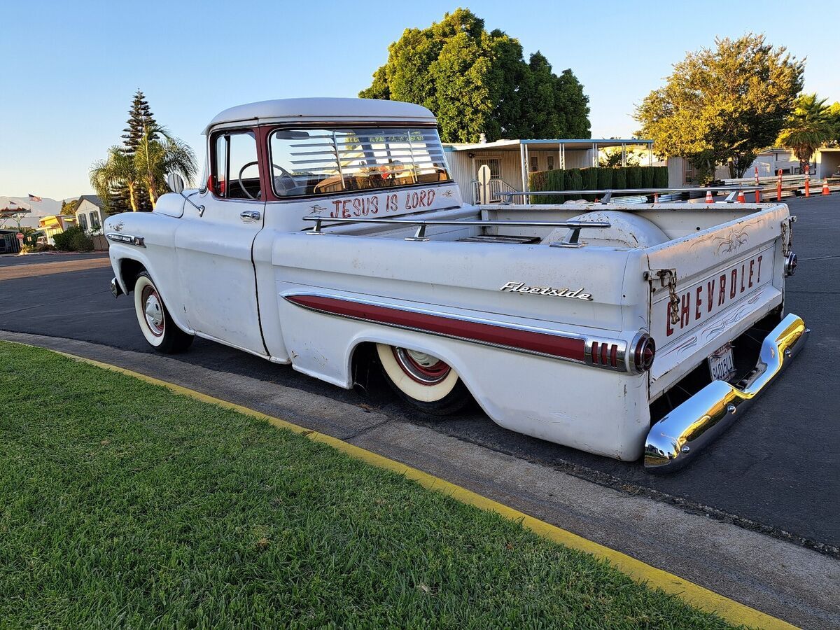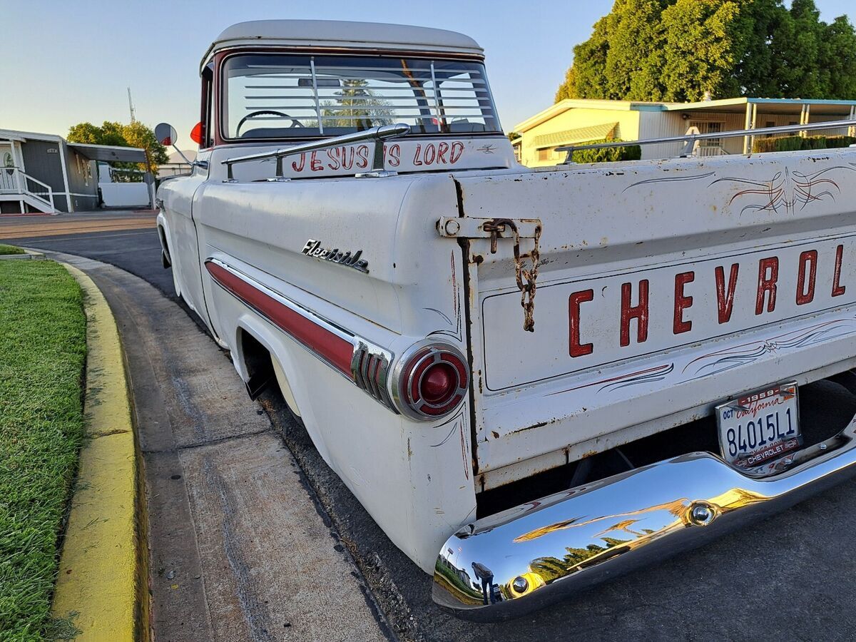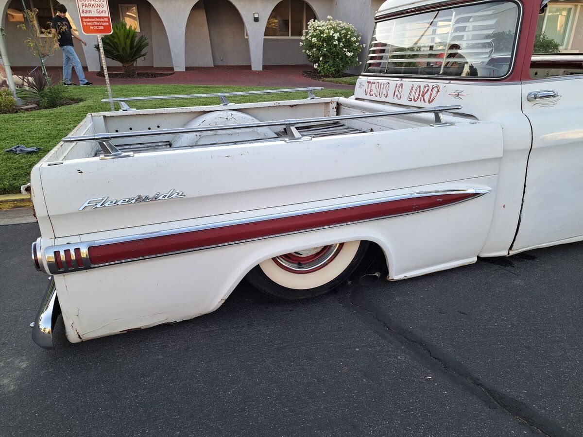 1959 Chevy Apache FleetSide Bagged all around v8 auto-trans jaguar front-end big window short Bed Chrome Spears bed racks lots to mention great truck must see very cool I get lost of looks and thumbs up