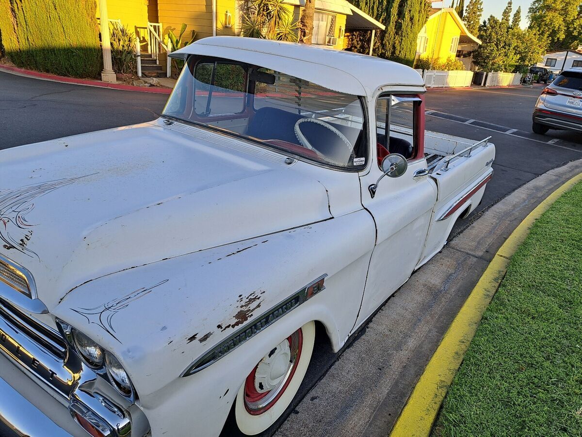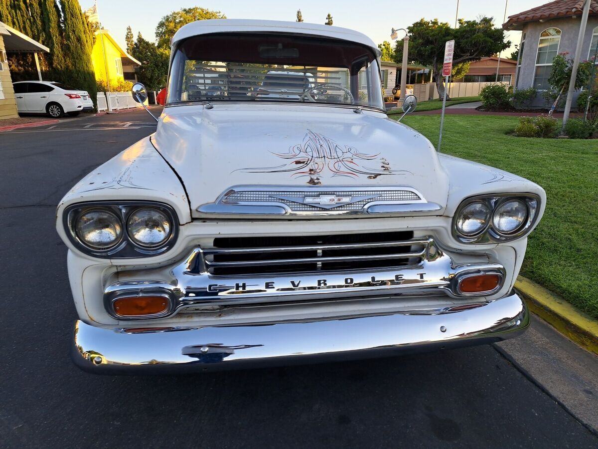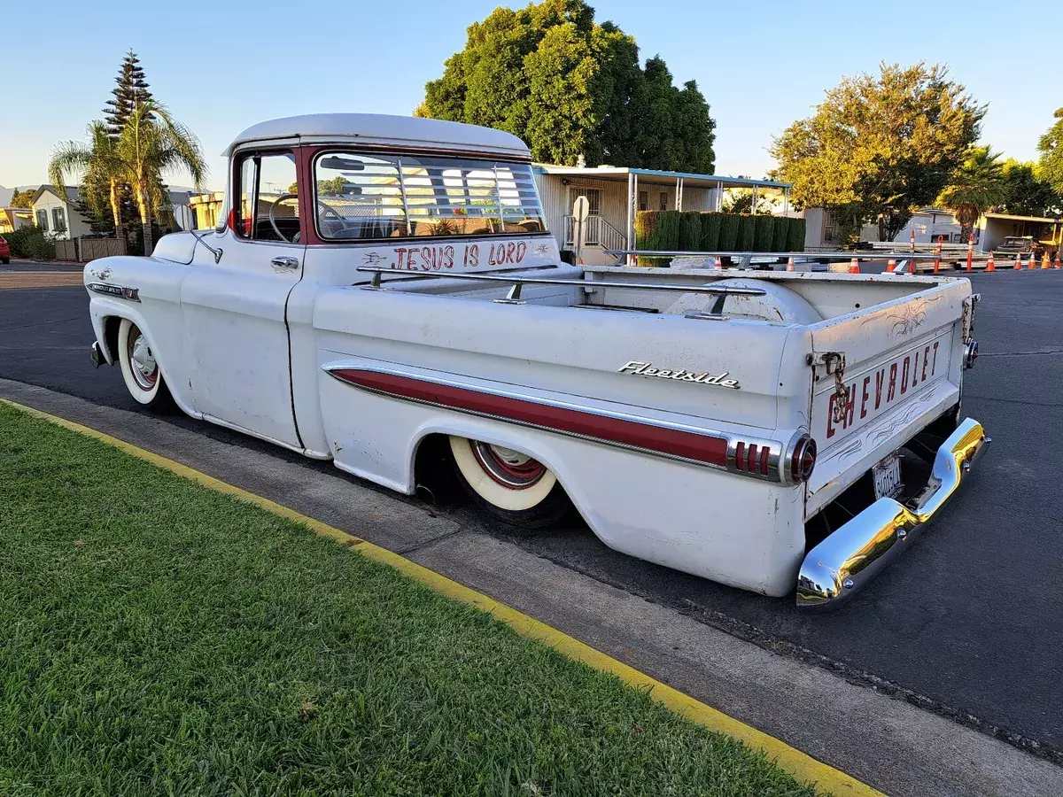 1959 Chevy Apache FleetSide Bagged all around v8 auto-trans jaguar front-end big window short Bed Chrome Spears bed racks lots to mention great truck must see very cool I get lost of looks and thumbs up
