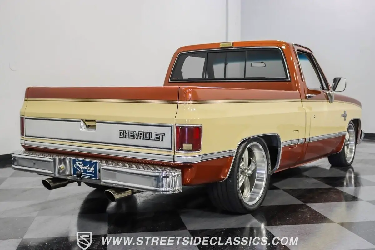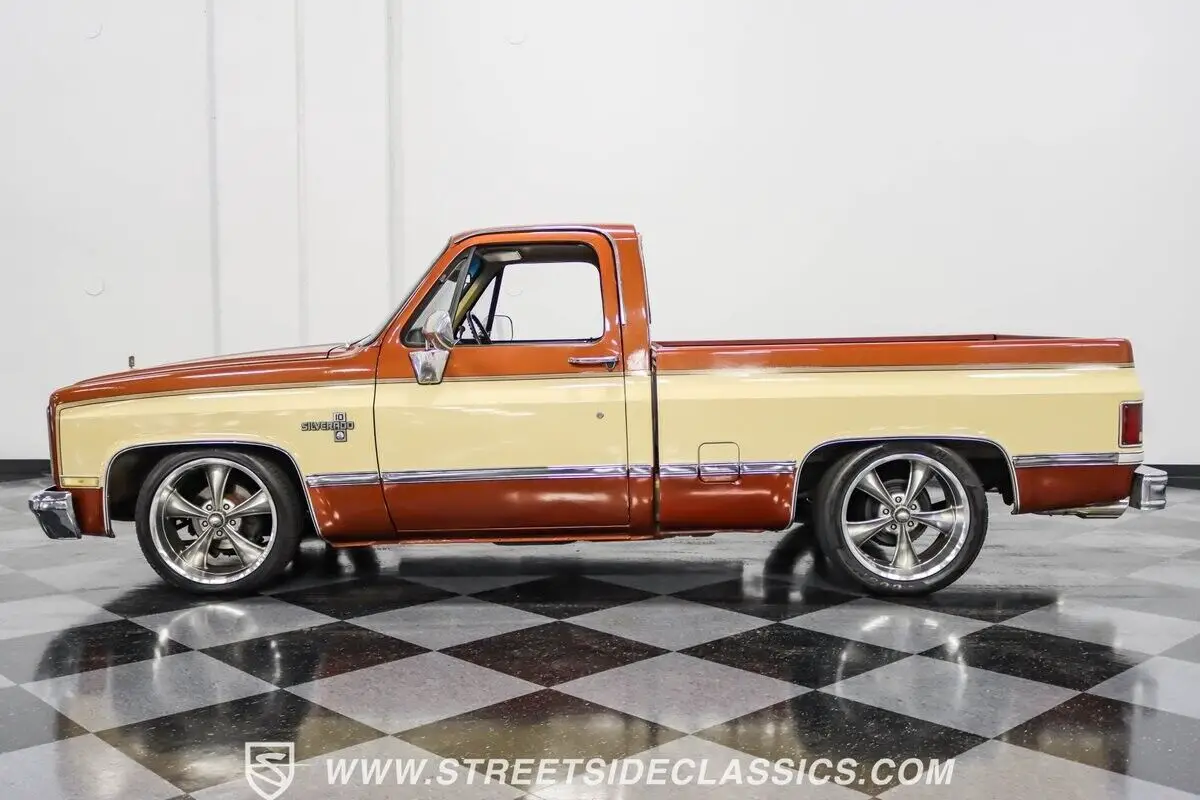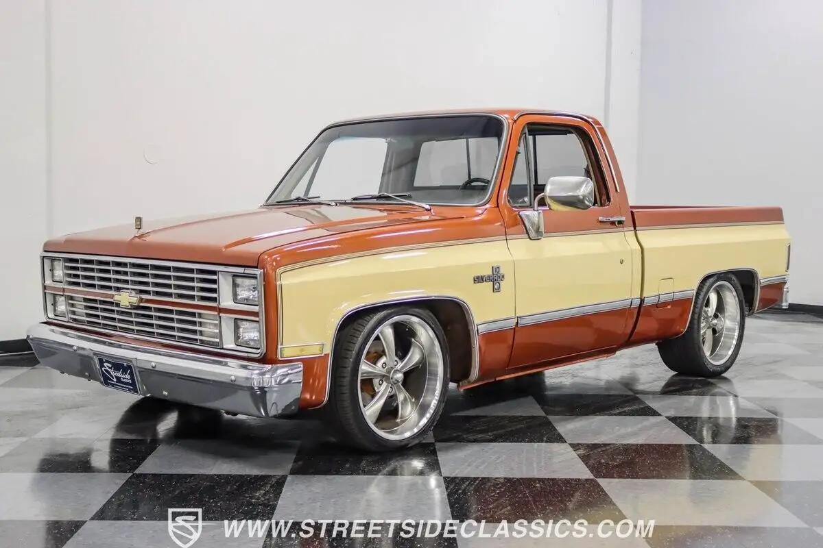 This 1983 Chevrolet C10 Silverado boasts a $12,000 mechanical refresh, making it a prime example of American muscle in pickup form. The light bronze exterior exudes confidence on the street. Its aggressive profile comes from a lowered stance and 20" Ridler wheels. The front sports 245/40R20 tires, while the rear showcases massive 315/35ZR20 rubber, both with ample tread. A Rhino-lined bed adds utility, and the dual exhausts amplify its muscular presence. The sliding rear window and tinted glass complete the truck's bold look. Open the door to an interior that fuses classic style with modern flair. The bench seat, wrapped in almond-colored vinyl and cloth, features a distinctive houndstooth pattern. Fresh carpeting and a new dash pad elevate the cabin's appeal. Digital gauges provide precise readouts, while the aftermarket Custom Auto Sounds stereo with Bluetooth lets you crank your favorite tunes. The column shifter maintains the truck's original feel, bridging the gap between vintage and contemporary. A peek at the engine bay reveals a 5.0-liter V8, primed for action. The Chevrolet dress-up kit adds visual punch to the functional components. An Edelbrock aluminum intake manifold and carburetor optimize airflow, while long-tube headers efficiently channel exhaust gases. This powerhouse pairs with a 3-speed TH350 automatic transmission, rebuilt just two years ago by Mark's House of Hot Rods. Power steering and power brakes with front disc offer precise control, while the 10-bolt rear axle effectively puts the power to the pavement. HIGHLIGHTS: • 5.0 Liter V8 Engine • 3 Speed Automatic Transmission (TH350) • Edelbrock Aluminum Intake Manifold • Edelbrock Carburetor • Long-Tube Headers • Borla Dual Exhaust System • Power Steering • Power Front Disc Brakes • 10-Bolt Rear Axle • Light Bronze Paint • 20" Ridler Wheels • 245/40R20 Front, 315/35ZR20 Rear Tires • Lowered Suspension • Rhino-Lined Bed • Sliding Rear Window • Tinted Glass • Almond Vinyl & Cloth Bench Seat with Houndstooth Pattern • Digital Gauges • New Carpet • New Dash Pad • Custom Auto Sounds Stereo with Bluetooth • Transmission Rebuilt 2 Years Ago • Recent $12,000 Mechanical Refresh This 1983 Chevrolet C10 Silverado delivers classic truck style with modern performance upgrades. Its potent 5.0L V8, comfortable interior, and aggressive stance make it equally suited for cruising or showing. Call today!